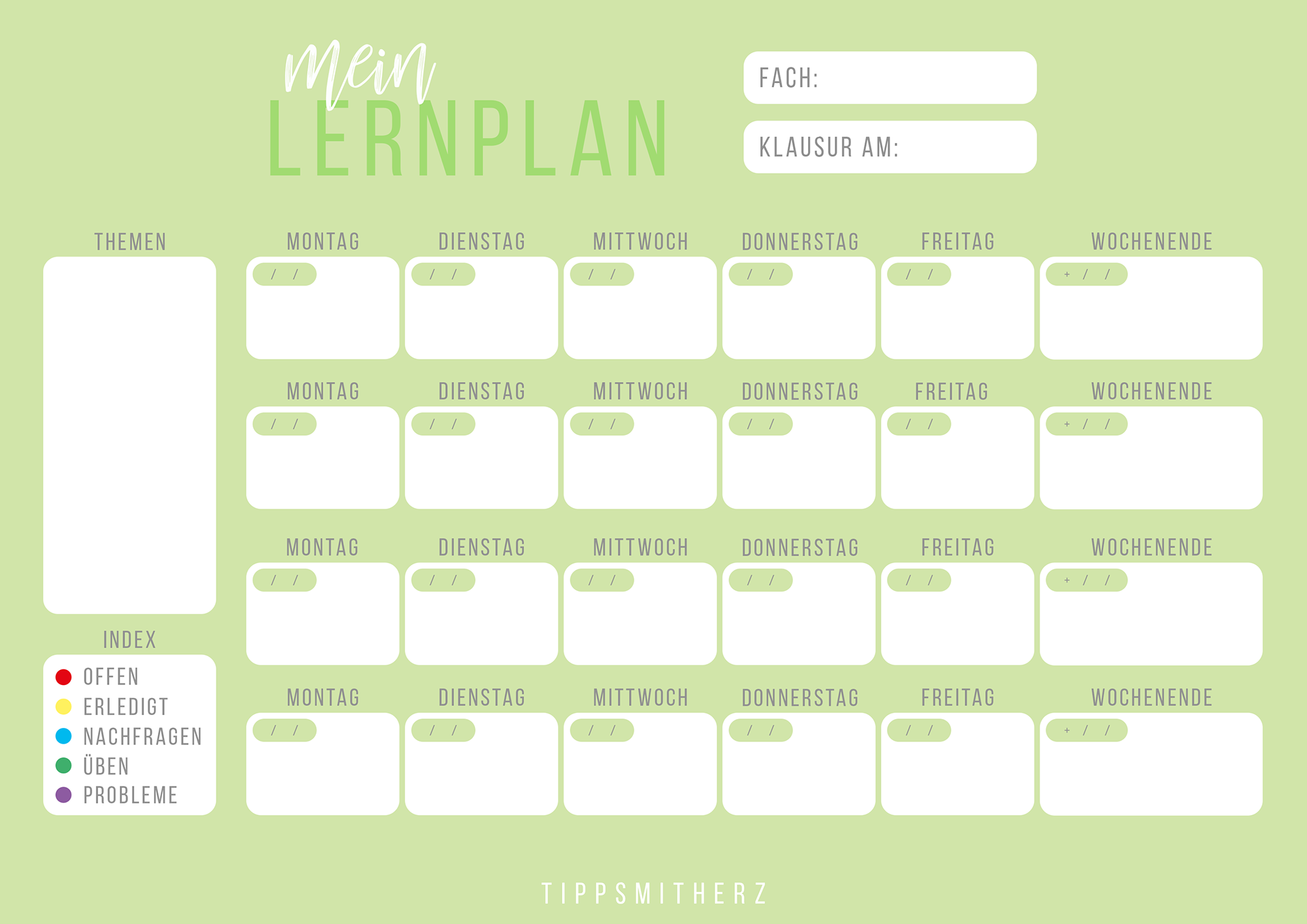 Folglich ist der lernplan auch eine checkliste die es abzuarbeiten gilt um. Lernplan erstellen in 4 schritten mit vorlagen. Bestimme was für dein ziel notwendig ist welche wissensquellen dir zur verfügung stehen. Sie wird das egal die art von inanspruchnahme sie benötigen auffinden sie eine vorlage um sie online zu erstellen.