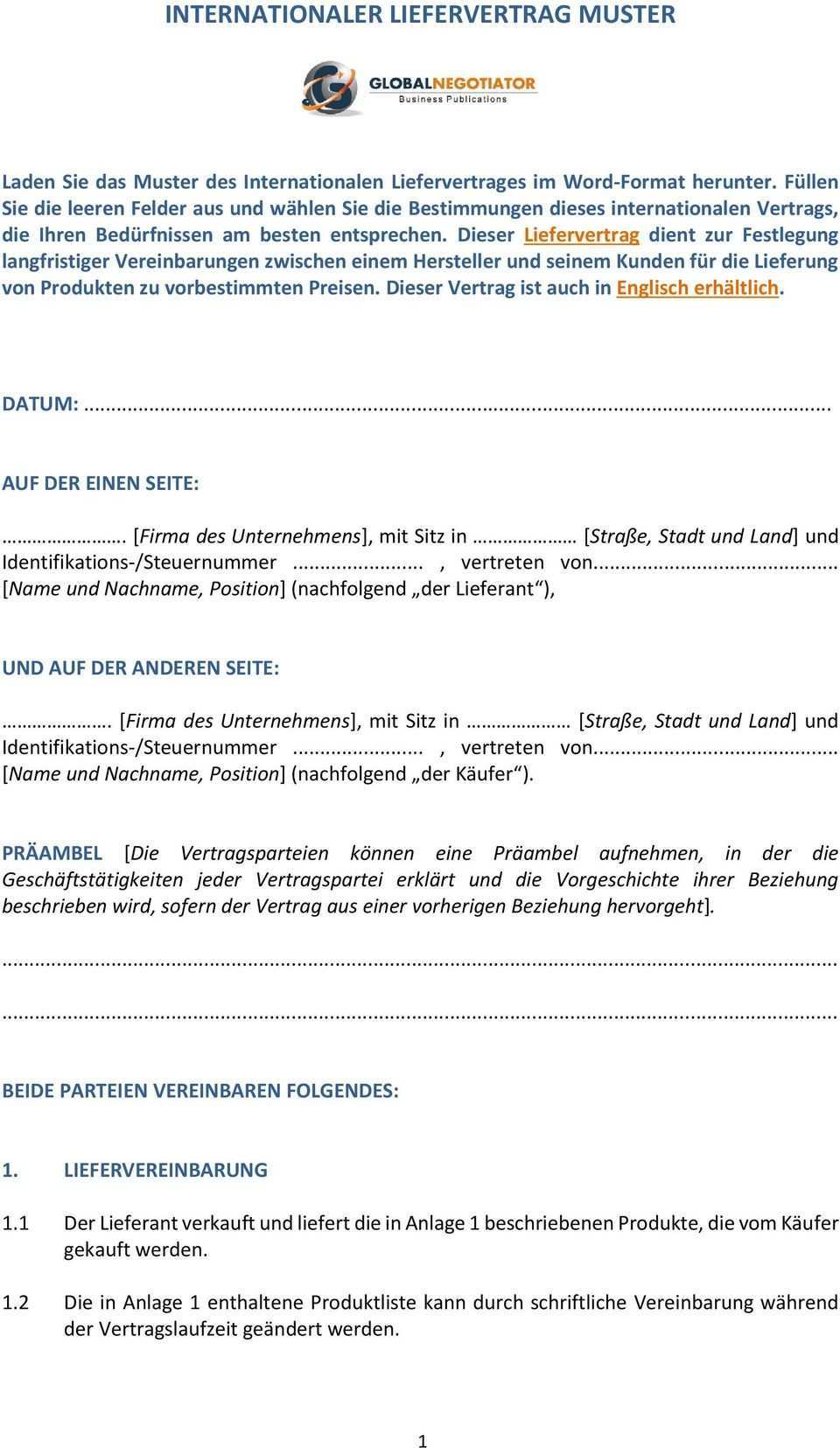 Füllen sie die leeren felder aus und wählen sie die bestimmungen dieses internationalen vertrags die ihren bedürfnissen am besten entsprechen. Liefervertrag muster kostenlos nutzen sie diese mustervorlage lieferantenvertrag für eine sichere vertragsabwicklung mit ihrem lieferanten lieferverträge sind ein wichtiges dokument für die beziehung zwischen unternehmen und deren lieferanten denn sie regeln welche ware in welcher menge wann und wie oft geliefert wird. Internationaler liefervertrag muster und vorlage 1. Hier gleich unverbindlich und kostenlos den gesamtkatalog oder den e learning katalog downloaden.