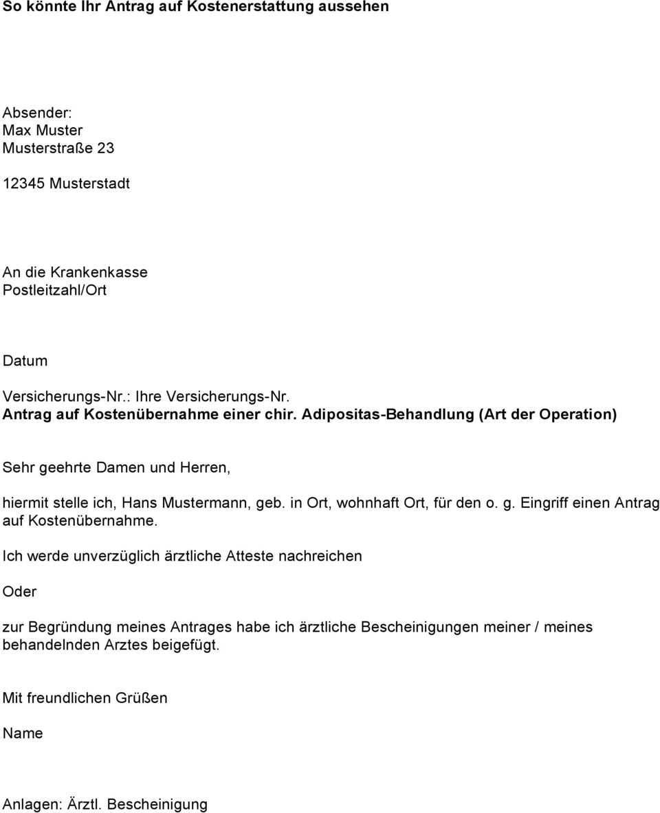 Auf wunsch verschiedener krankenkassen und der medizinischen dienste sollten sie ihrem antrag auf kostenübernahme künftig eine gegliederte tabellarische aufstellung beilegen. Von anne jul 2 2019 blog feature artikel hautüberschuss wiederherstellungsoperationen muster antrag bauchstraffung muster anträge krankenkasse. Name adresse krankenkasse persönlich abgegeben in antrag einer kostenübernahme für eine adipositas chirurgische massnahme versicherungsnummer. Jürgen belz und seinem team laparoskopisch und in vollnarkose durchgeführt werden.