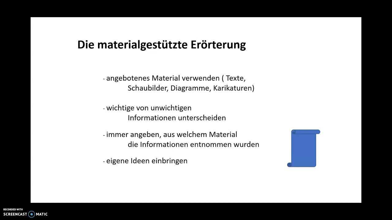 Materialgestuetzte eroerterung muster. Argumentieren auch in freieren formen. In der schule werden sie in der regel auf die aufgabe eine materialgestützte erörterung zu schreiben vorbereitet. Die erörterung ist eine schriftliche argumentation. Auswertung eines sachtexts mit anschließendem erörterungsauftrag.