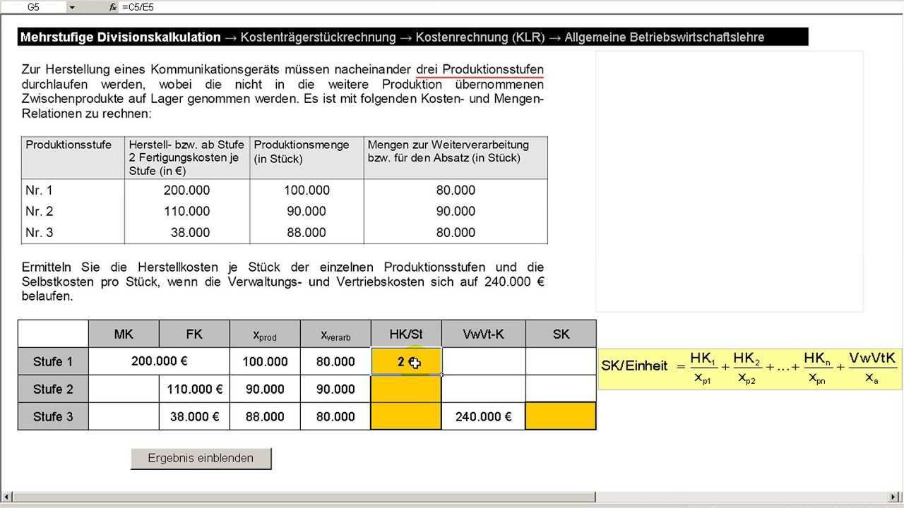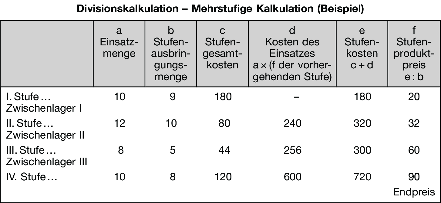 Mehrstufige Divisionskalkulation Beispiel