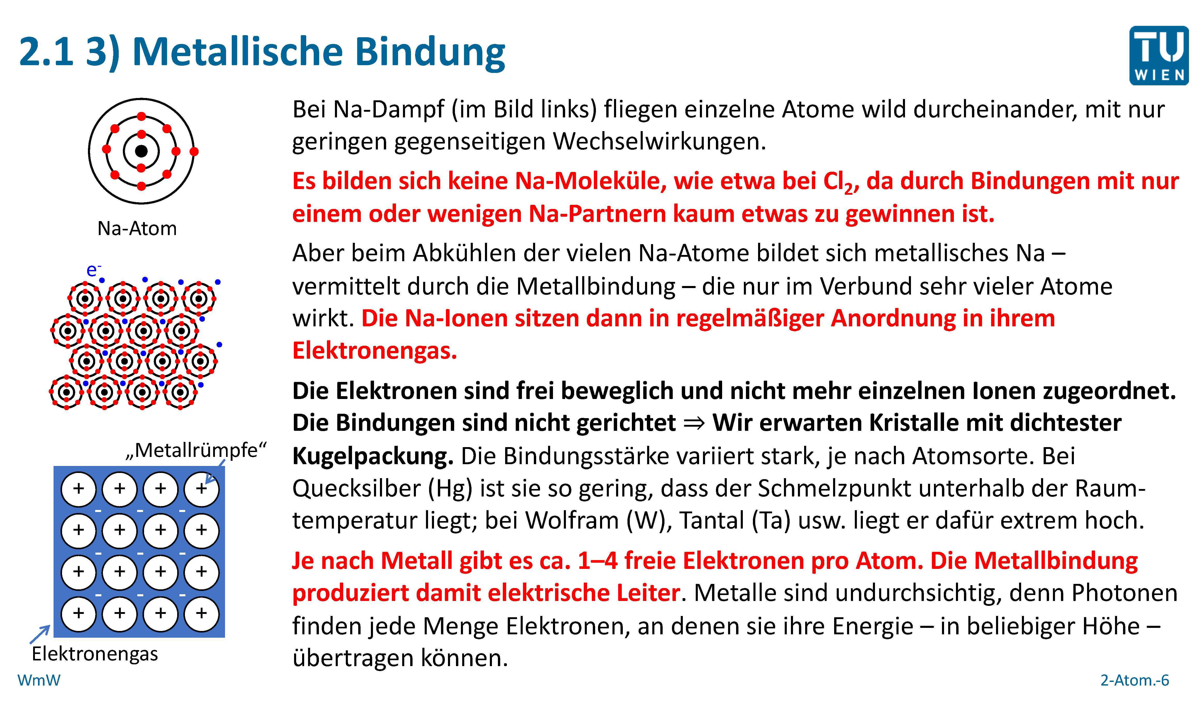 Die metallbindung wird durch die starke anziehung zwischen den positiv geladenen atomrümpfen und dem negativ geladenen elektronengas zusammengehalten. Was ist ein metall. Um dir die metallbindung anhand ein paar beispiele genauer anzuschauen kannst du einen blick auf die linke seite im periodensystem werfen. Im prinzip ist jedes metallstück so es als festkörper vorliegt ein typisches beispiel für eine metallbindung.