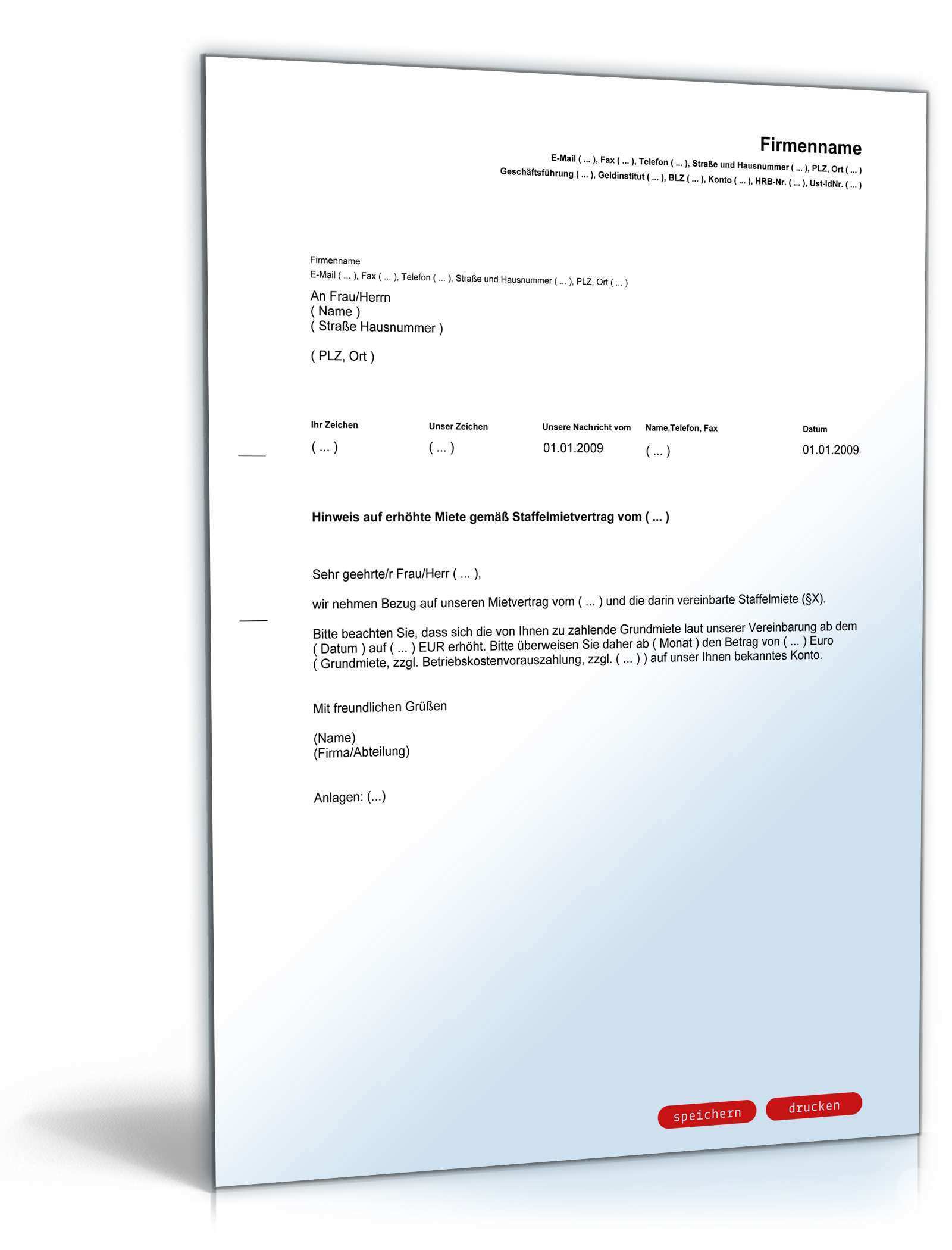 Mieterhoehung gewerbe muster. Der vermieter kann also nicht durch einseitige erklärung eine mieterhöhung herbeiführen oder die zustimmung des mieters zu einer mieterhöhung verlangen. Allerdings ist auch im gewerbemietrecht eine mieterhöhung nicht ausgeschlossen. Sie können sich diese kostenlos herunterladen und individuell anpassen. Individuelle mietverträge sorgen für eine große rechtssicherheit.