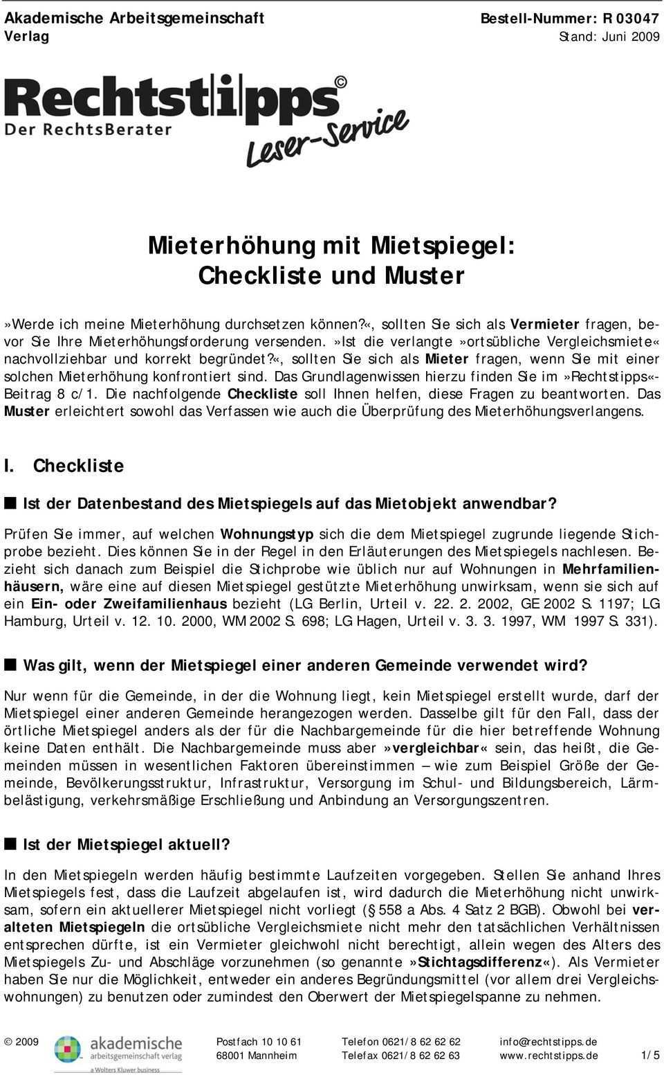 Es ist ausreichend wenn der mieter die möglichkeit hat ihn einzusehen. Eine kopie muss er ihnen dann nicht mitschicken. Im idealfall einigt sich der vermieter mit dem mieter einvernehmlich auf eine mieterhöhung. Das muster ist als eine unverbindlich vorlage und als orientierung zu verstehen.