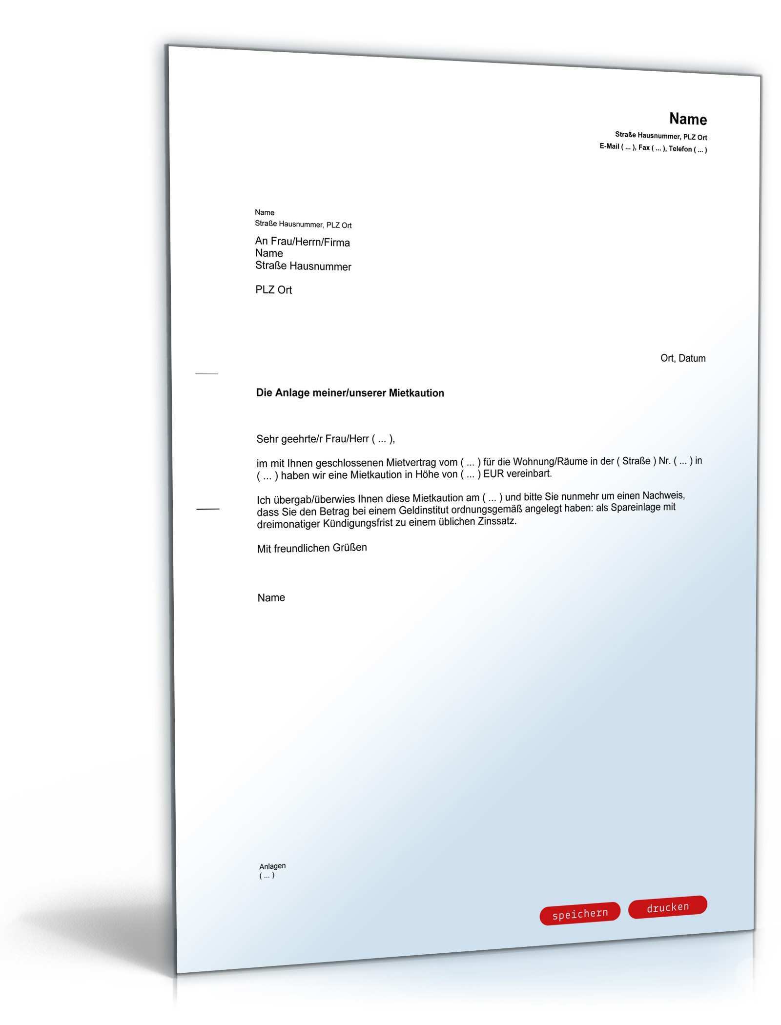 Für den zeitpunkt der rückzahlung der kaution gibt es keine eindeutige gesetzliche regelung in der rechtsprechung werden im allgemeinen maximal sechs monate als ausreichend für den vermieter erachtet um mögliche ansprüche an den mieter zu prüfen. Die ansprüche sollten im übergabeprotokoll festgehalten sein. Da unser mietverhältnis zum muster datum endete und wir die mietsache bereits am muster datum ordnungsgemäß an ihren mitarbeiter muster name übergeben haben möchte ich hiermit erneut die rückzahlung der von uns geleisteten mietkaution in höhe von muster zahl einfordern. Mietkaution vom vermieter zurückfordern.
