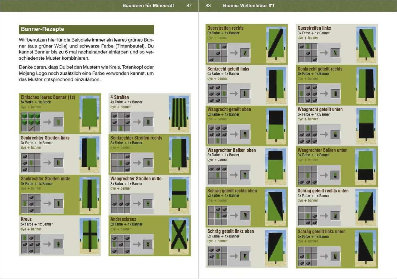 Minecraft banner muster rezepte. Bannervorlagen können im webstuhl für das einfügen von bestimmten muster in bannern benutzt werden. Discover and save your own pins on pinterest. 1 eigenschaften 2 gewinnung 2 1 herstellung 2 2 vorkommen 3 verwendung 3 1 verarbeitung 3 2 brennstoff 3 3 muster 3 4 muster kopieren 3 5 flaggen 3 6. Nbt daten blockobjektdatenid banner blockzustand siehe tabelle das banner ist ein dekorationsblock.