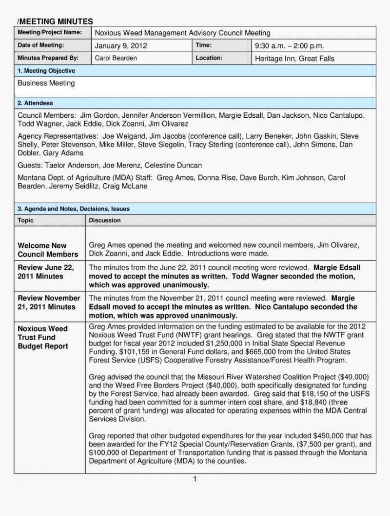 Minutes Of Meeting Vorlage