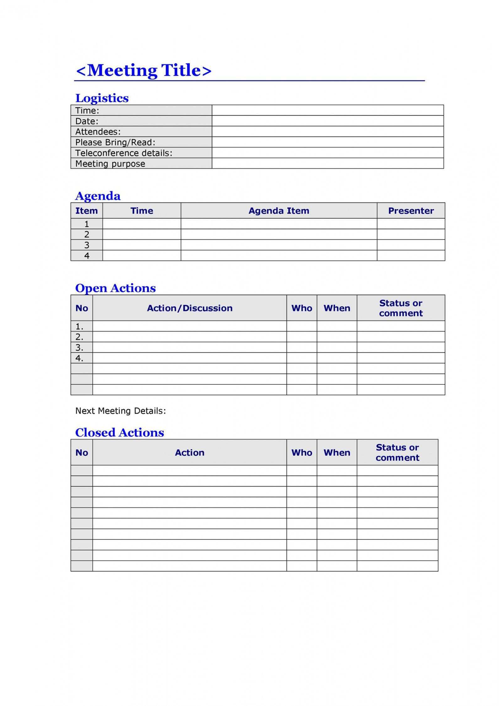 Another option is a template called formal meeting minutes. To simply put meeting minutes keep a record that captures the agreed outcomes of a meeting which can also be used for follow. Formal meeting minute templates are normally used for executive board or official meetings with many discussion points. Use 8 5 11 paper size.