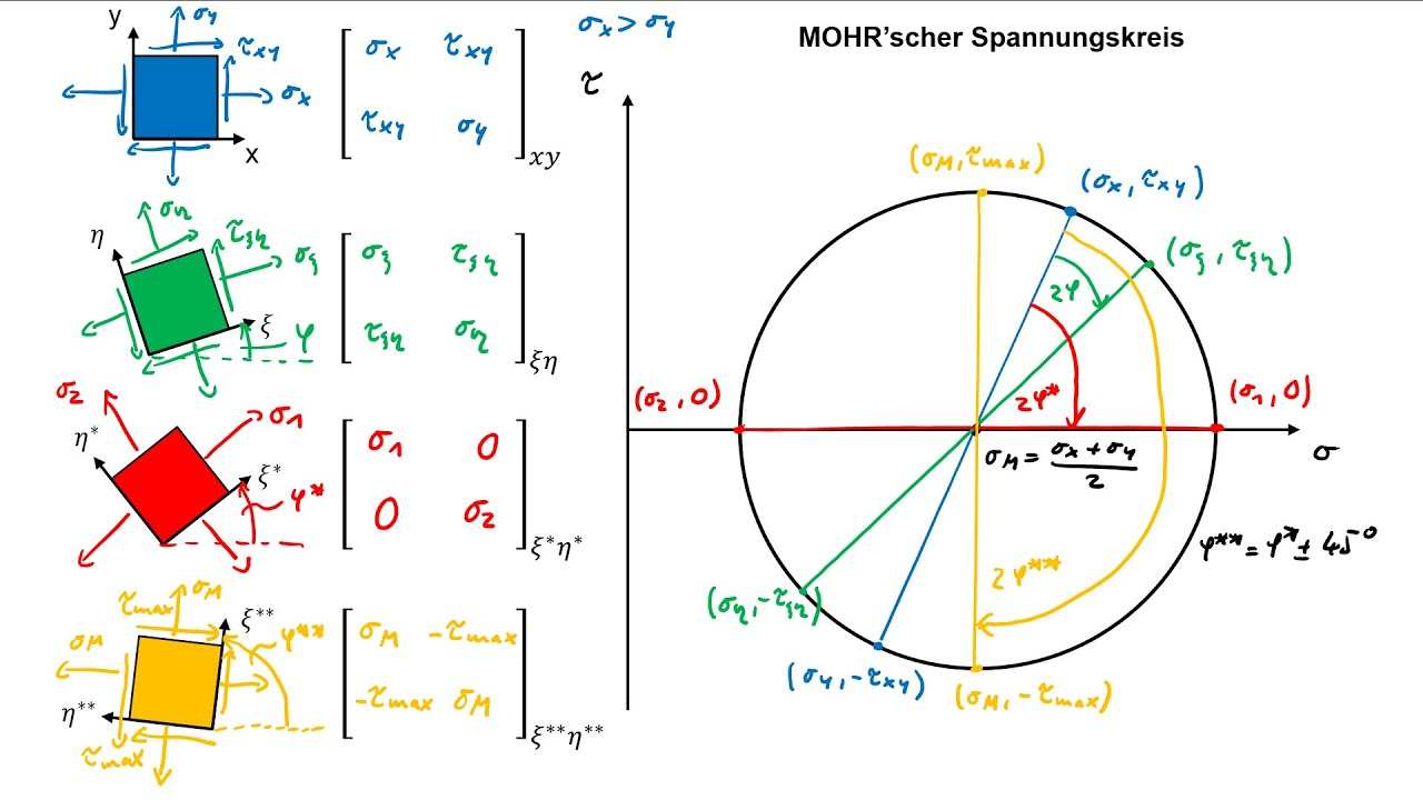 Mohrscher spannungskreis beispiel. Hier erklärt klugscheißer carlo euch den mohrschen spannungskreis. Unser koordinatensystem legen wir genau entlang der kanten des quadrats. Spannungskreis die winkel von der teilverbindungslinie blau immer entgegengesetzt abtragen müssen wir die abtragung also mit dem uhrzeigersinn vornehmen. 3 1 mohrscher spannungskreis des spannungszustandes.