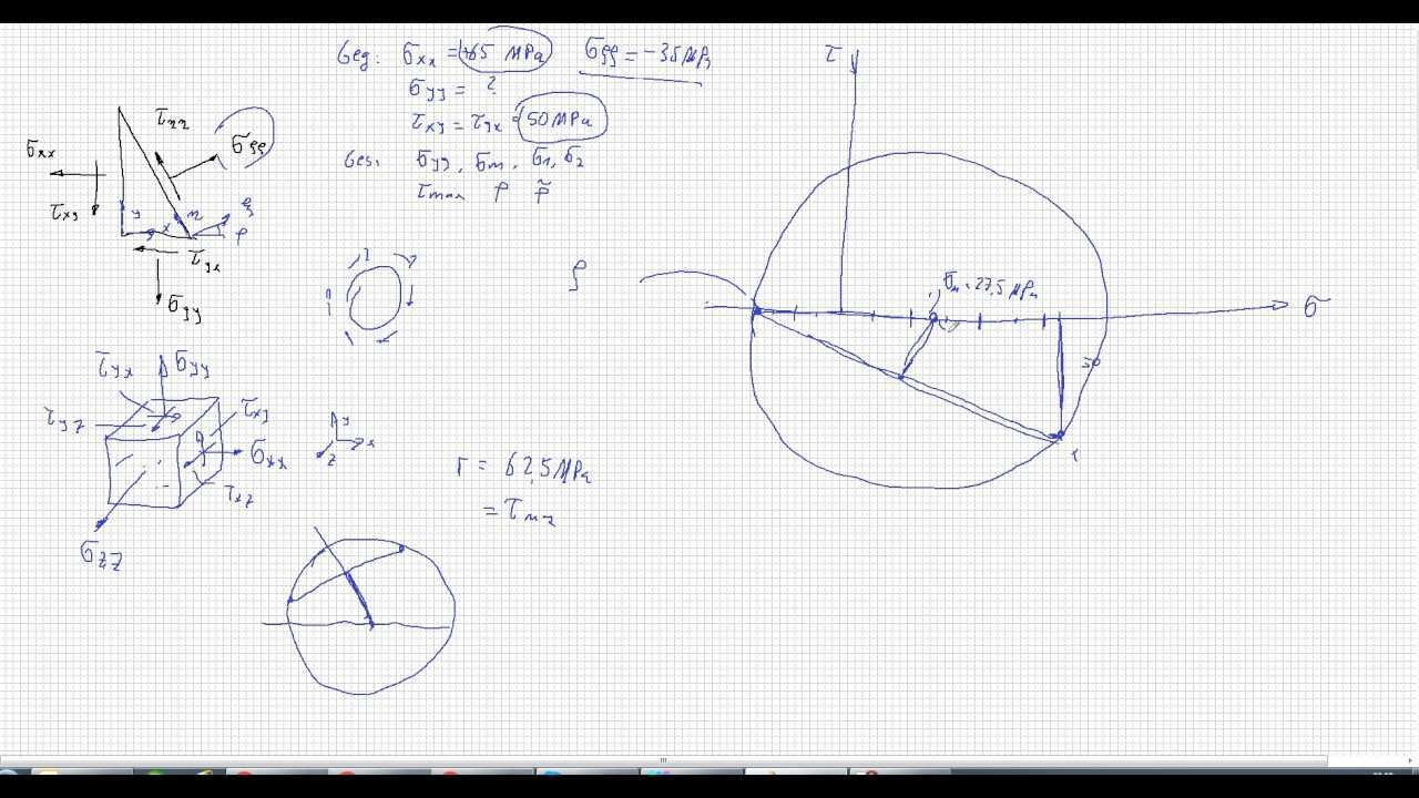 Video mohrscher spannungskreis ähnliches beispiel. Wir tragen den winkel von 2 35 70 im uhrzeigersinn ab. Mohrscher spannungskreis beispiel schauen wir uns gleich einmal ein beispiel dazu an. Die tensormatrix für den spannungszustand in einem punkt p eines belasteten maschinenbauteiles ist im x y z koordinatensystem gegeben.