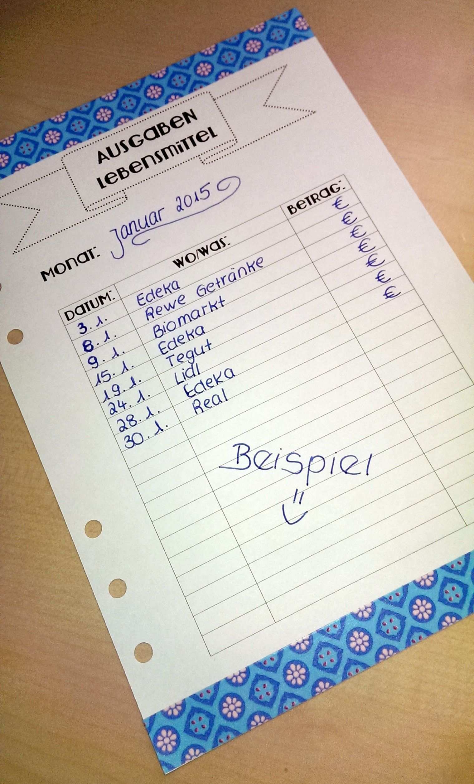 Monatliche Ausgaben Beispiel