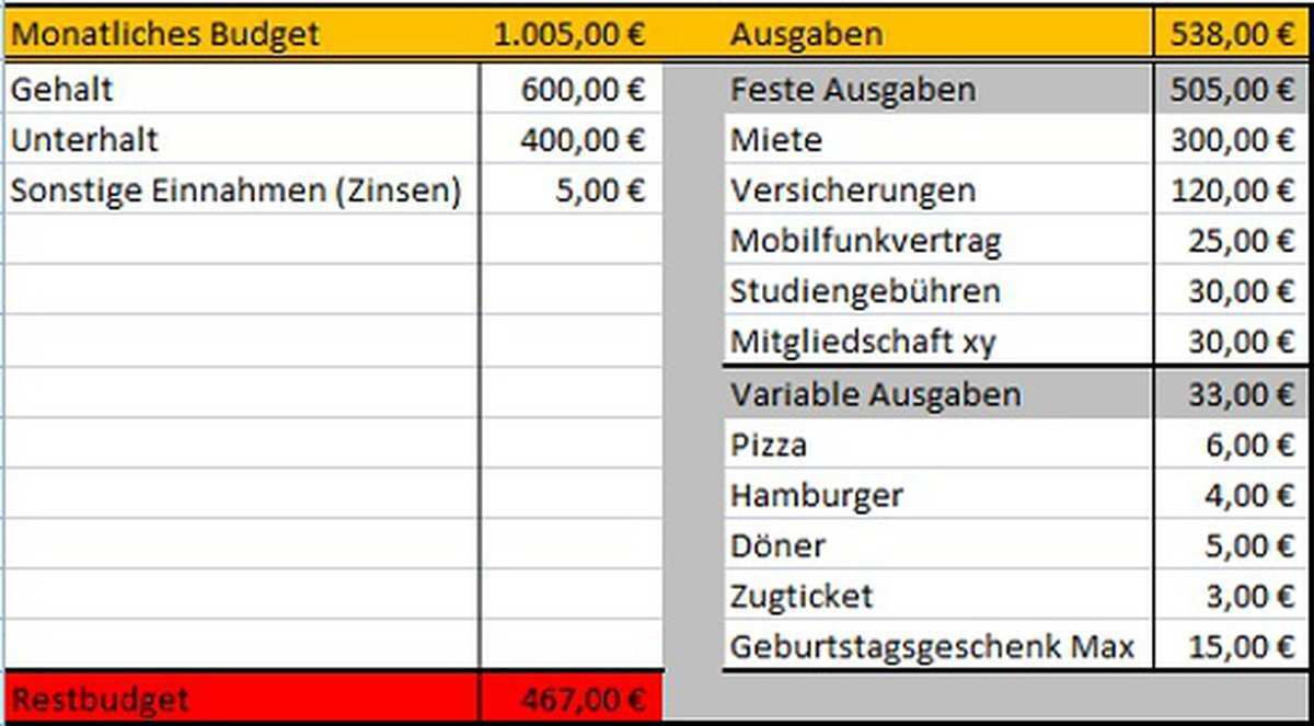 Du kannst und sollst sie jederzeit an deine individuellen bedürfnisse einnahmen und ausgaben anpassen. Mit dem haushaltsbudget behalten sie monatliche einnahmen und ausgaben im blick. In dieser statistik werden jedoch die durchschnittswerte der gesamtheit aller single haushalte dargestellt. Am ende erhalten sie dann einen überblick ob sie noch innerhalb ihres budgets liegen oder nicht.
