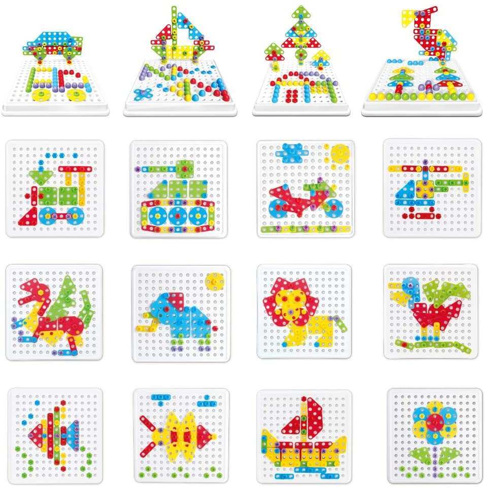 Tinoteen mosaik steckspiel für kinder lernspielzeug steckmosaik mit 50 steckperlen und 18 bunten steckplätte mehr freude kinderspielzeug mit 18 verschiedenen mustern und 46 bunten knöpfen bringt kindern mehr.