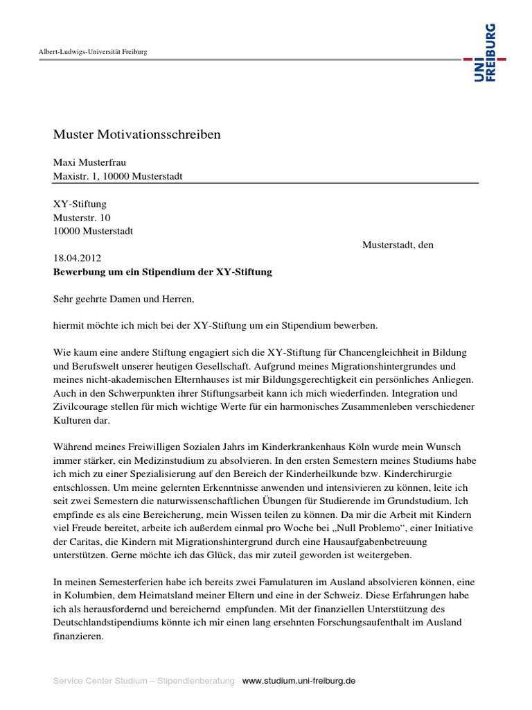 Bitte kopieren sie den kompletten inhalt oder einzelne sätze der nachfolgenden vorlagen in ihrem eigenen interesse nicht einfach nur sondern stellen sie ihre motivation mit ihrem eigenen individuellen motivationsschreiben überzeugend dar. Wichtig für das motivationsschreiben fürs stipendium ist auch zu wissen wie man das ganze aufbauen möchte und was eigentlich alles in das motivationsschreiben gehört. Kostenlose vorlagen und muster für bewerbung studium und stipendium. Ihre stiftung fördert bevorzugt.