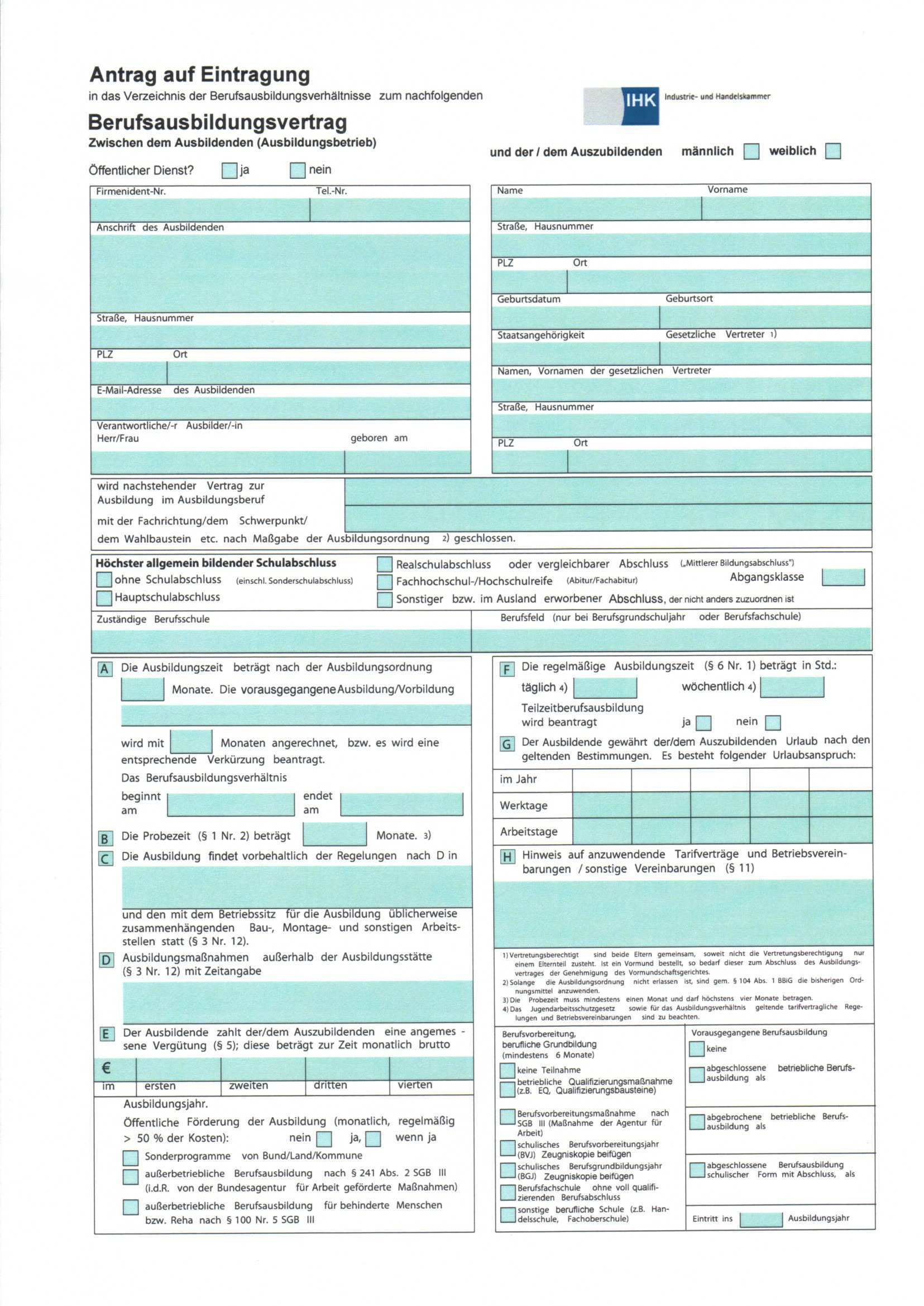 Muster ausbildungsvertrag ihk. Die ihk führt ein verzeichnis der berufsausbildungsverhältnisse. Die webanwendung stellt korrekte inhalte sicher und erlaubt die verschlüsselte elektronische datenübermittlung an die ihk region stuttgart. Die pdf datei besteht aus dem antrag auf eintragung sowie dem ausbildungsvertrag in dreifacher ausfertigung. Den ausbildungsvertrag als schnelltrennsätze erhalten sie im sekretariat des fachbereichs ausbildung tel.