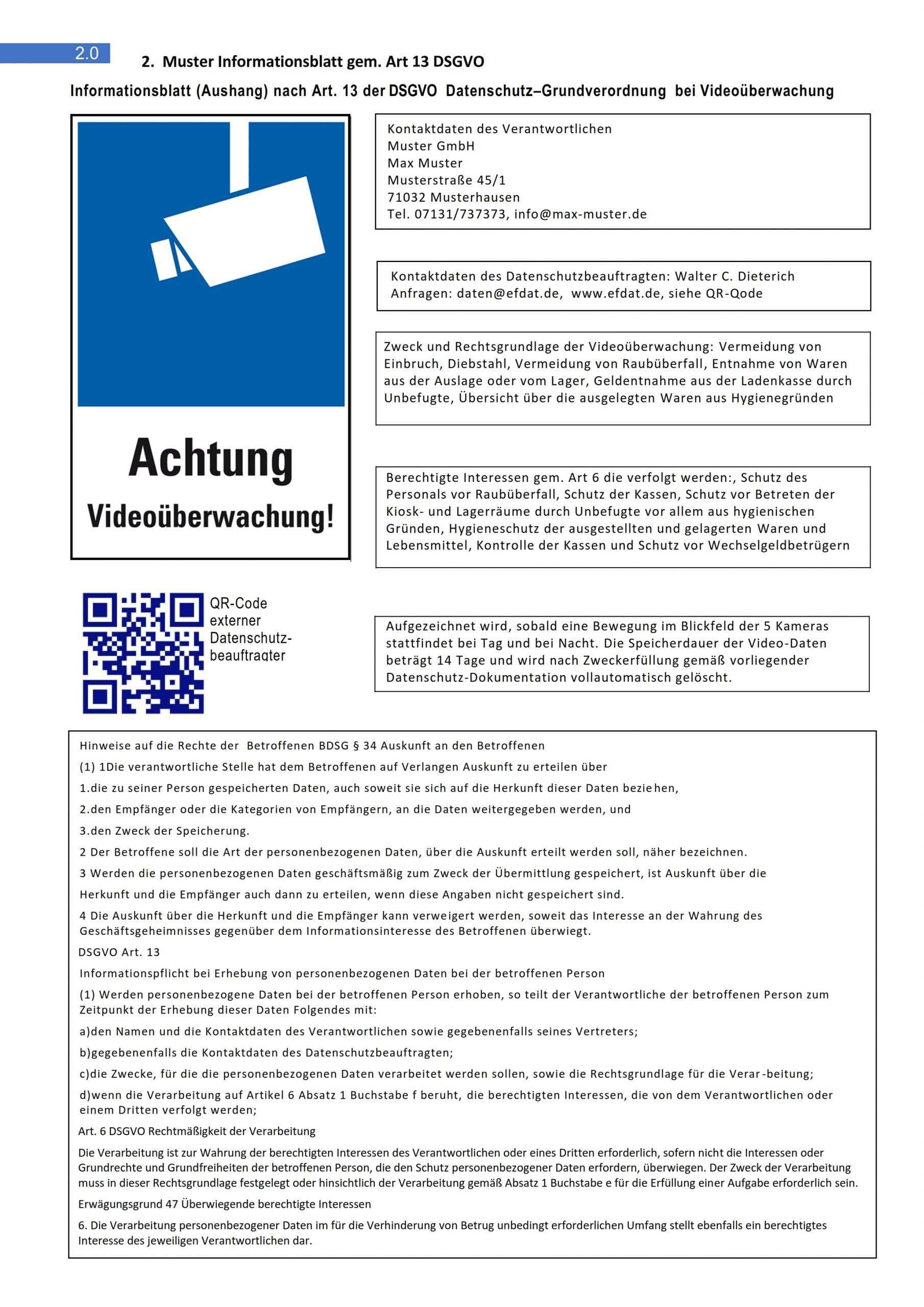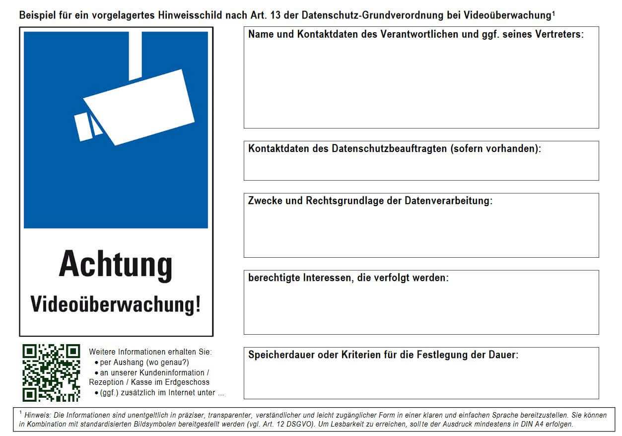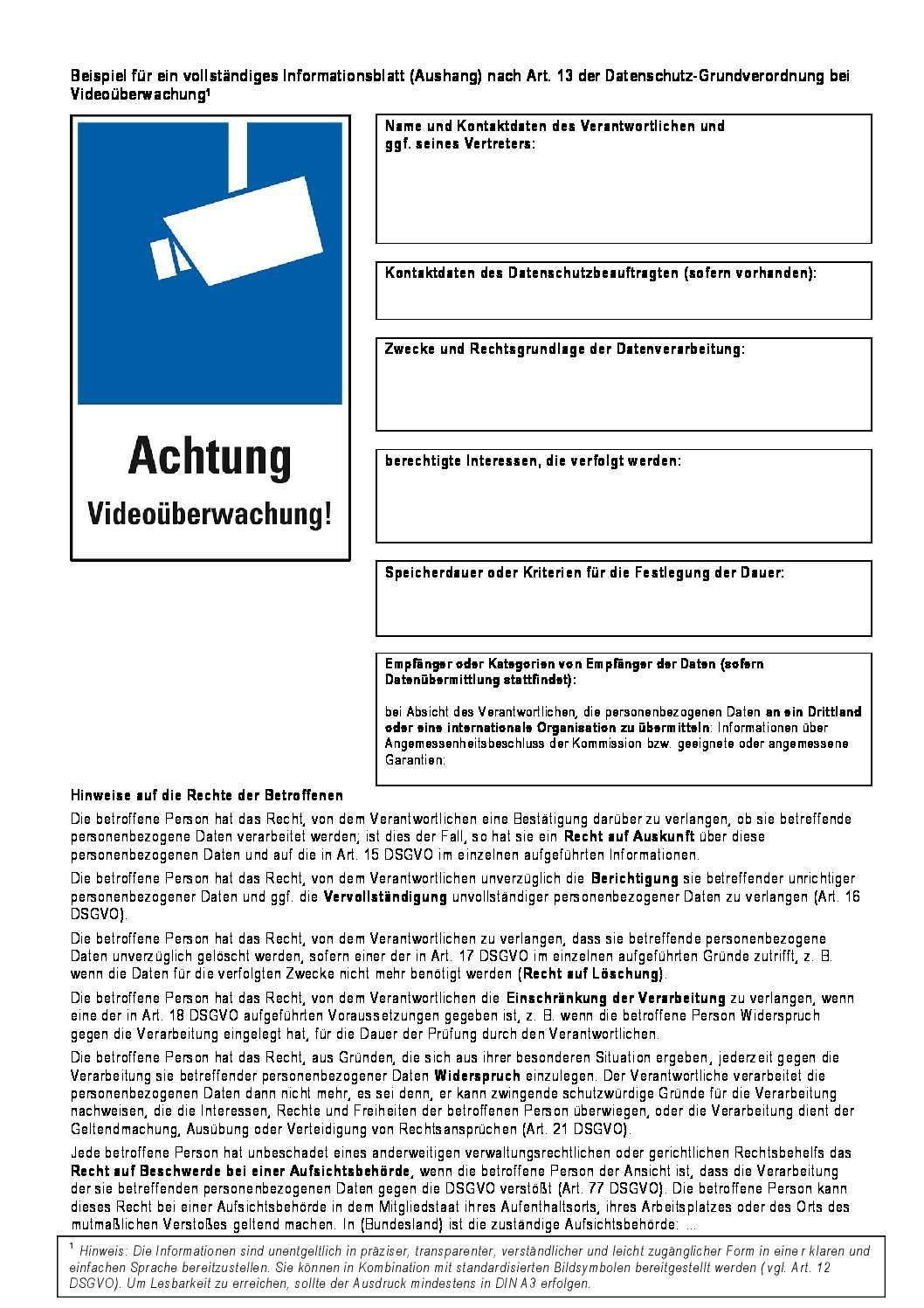 Beispiel für ein vollständiges informationsblatt aushang nach art. Dabei hilft ihnen unsere muster vorlage die sie hier downloaden können. Beispiel für ein vollständiges informationsblatt aushang nach art. 13 der datenschutz grundverordnung bei videoüberwachung1 speicherdauer oder kriterien für die festlegung der dauer.