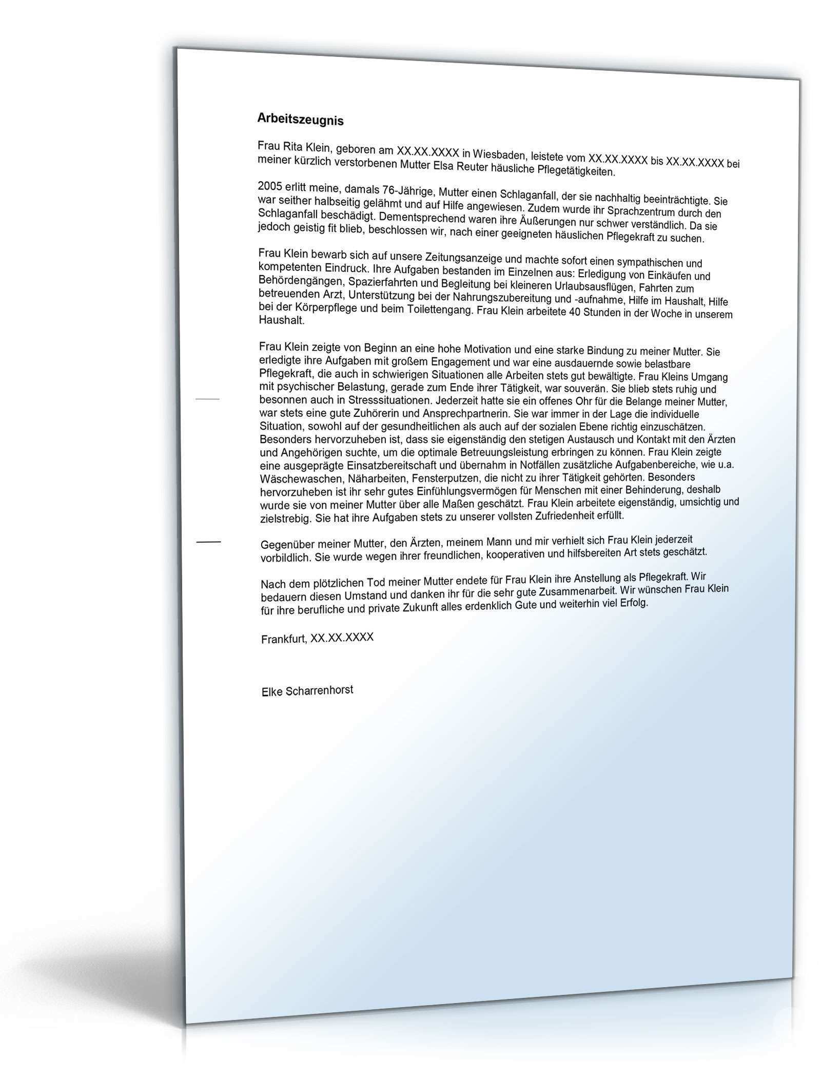 Arbeitszeugnis herr michael schmidt geboren am 01 07 1965 wohnhaft bismarckstraße 23 in 10625 berlin wurde in der zeit vom 01 01 2005 bis zum 31 10 2010 als altenpfleger in unserem pflegeheim am standort charlottenburg eingesetzt. Im folgenden finden sie kostenlose beispiele für gute und sehr gute benotungen. Da es keine rechtliche verpflichtung für ein beurteilungsschreiben gibt und der verfasser dieses freiwillig ausstellt muss der empfänger im gegensatz zur zeugnissprache wenig versteckte codes fürchten. Arbeitshilfe 8 1 seite 7 arbeitshilfe.