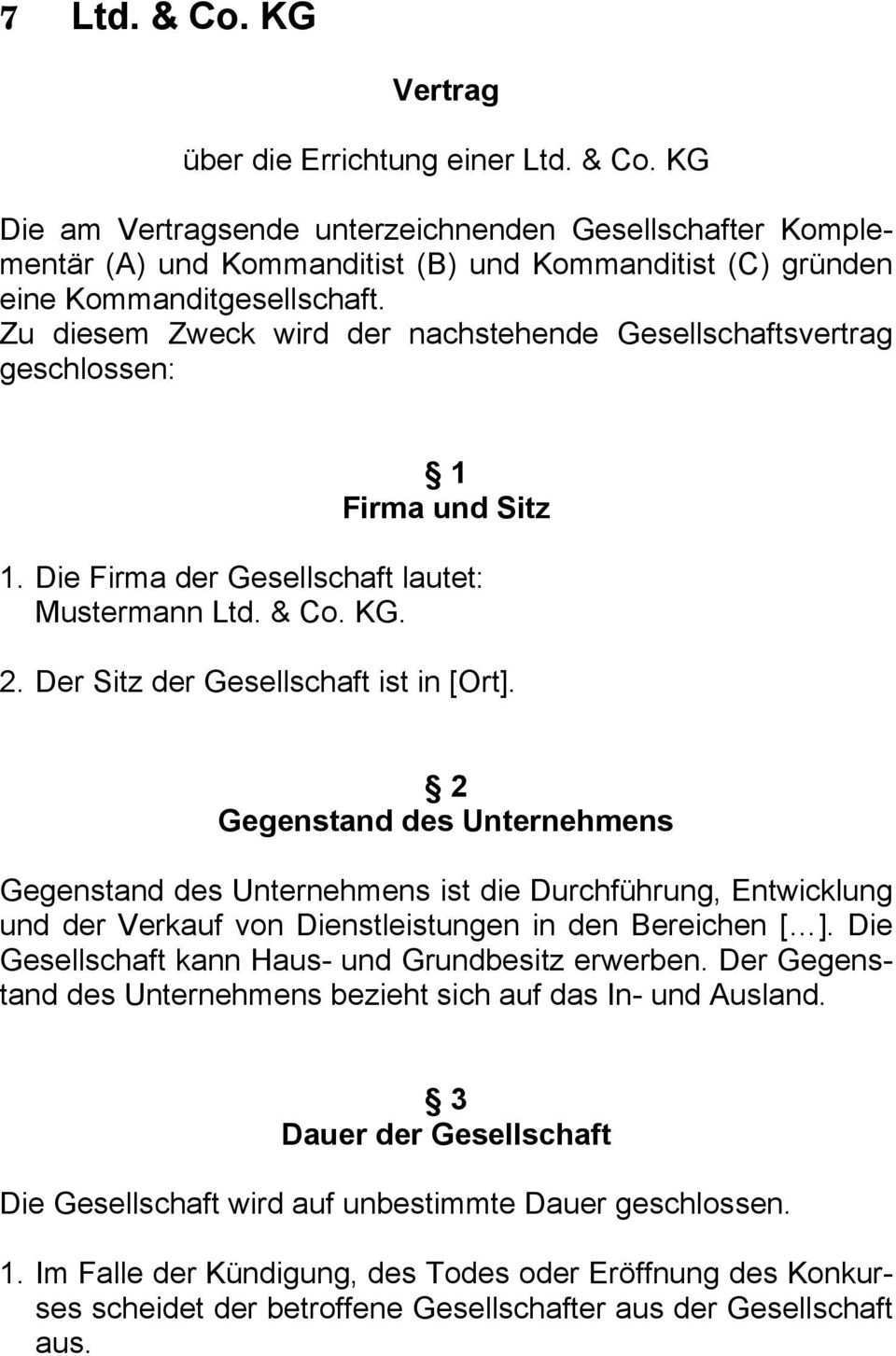 Muster Gesellschaftsvertrag Ohg