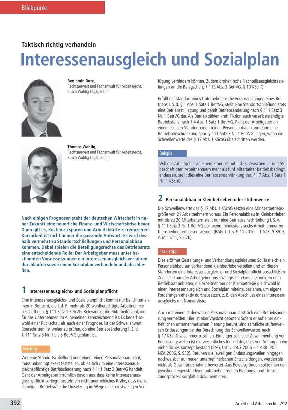 Hierbei drohen jedoch häufig wirtschaftliche nachteile für die arbeitnehmer. Wir erklären die betriebsänderung und das mitbestimmungsrecht des betriebsrats. Externer link interessenausgleich und sozialplan sind durch den betriebsrat erzwingbar. Interessenausgleich und einen sozialplan die ihnen als beispiele aus der praxis anregungen geben sollen wie entsprechende vereinbarungen aussehen können.