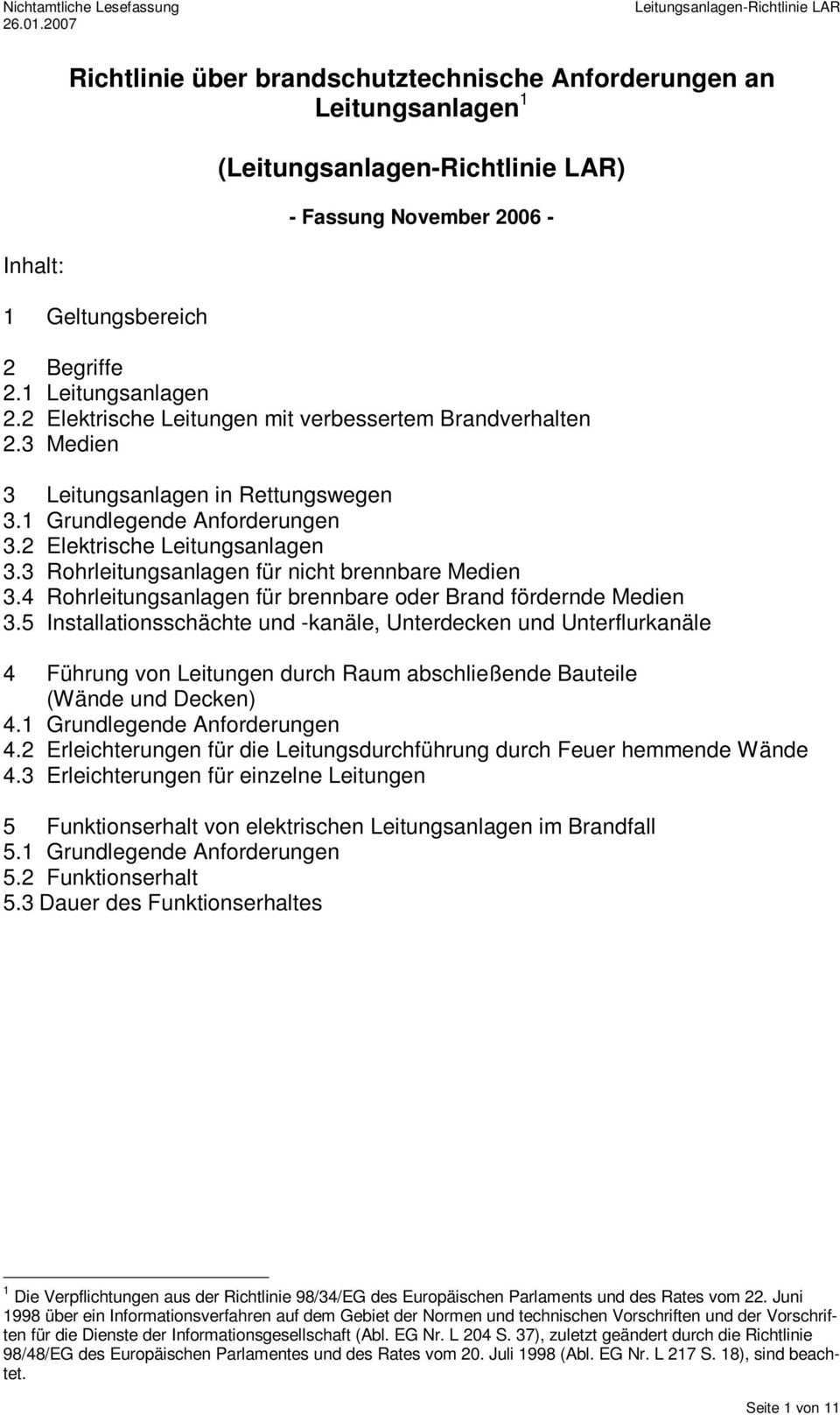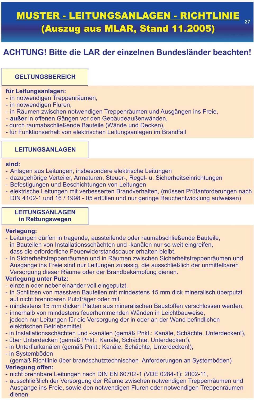 Muster richtlinie über brandschutztechnische anforderungen an leitungsanlagen 1 muster leitungsanlagen richtlinie mlar stand.