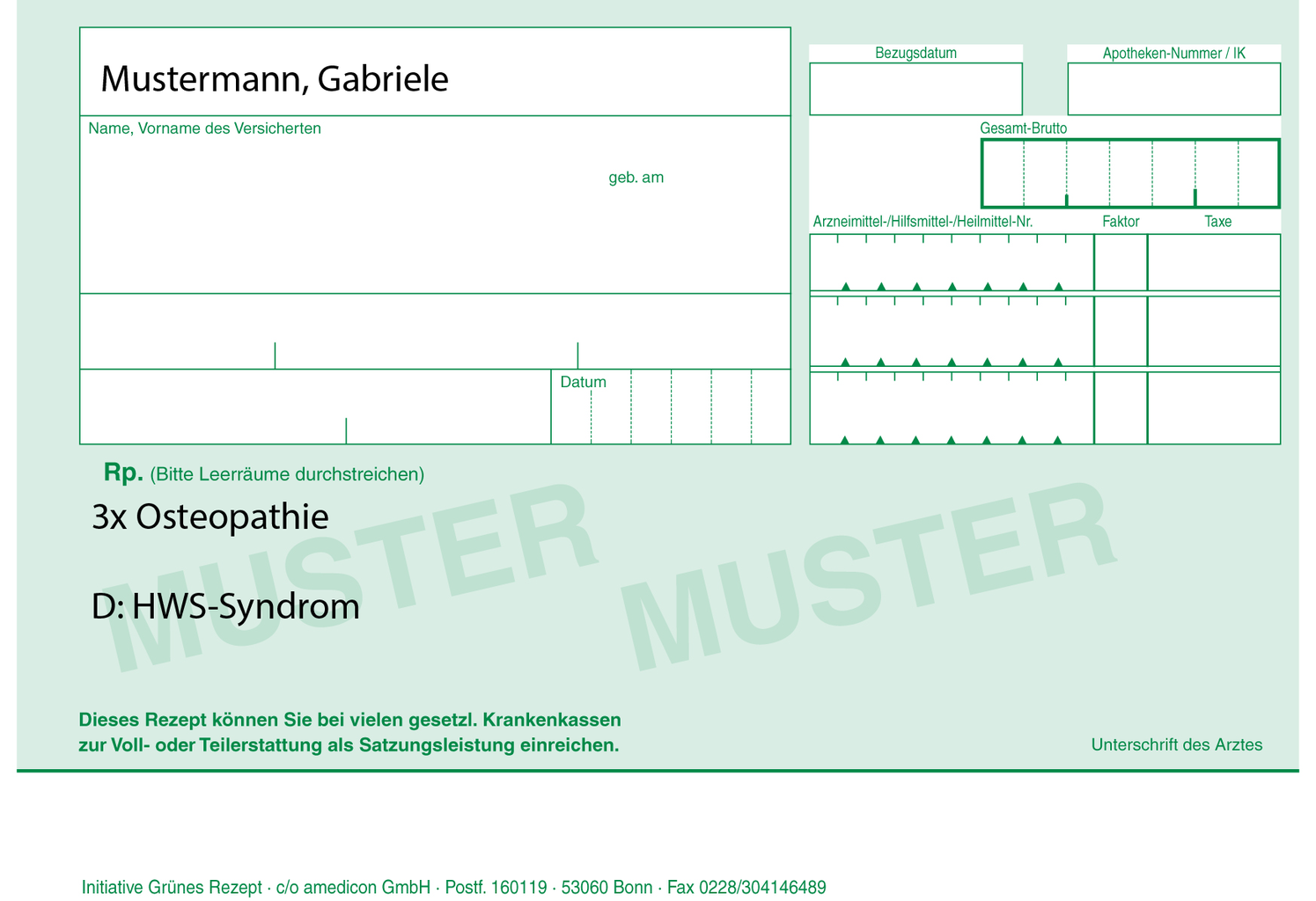 Dies tun sie jedoch nur wenn die verordnung von einem arzt ausgestellt wurde. Mittlerweile geben viele gesetzliche krankenkasse einen zuschuss für osteopathie. Muster privatrezept osteopathie 3 privatrezept vorlage zum ausdrucken july 19th 2018 vorlagen privatrezept vorlage word schön kindergeburtstag 6 jahrige word inkontinenz vorlagen auf rezept beispiel 50 fotos designs galerie 77 genial. 29 03 2012 fachbeitrag rezepte verordnungshürden bei osteopathie.