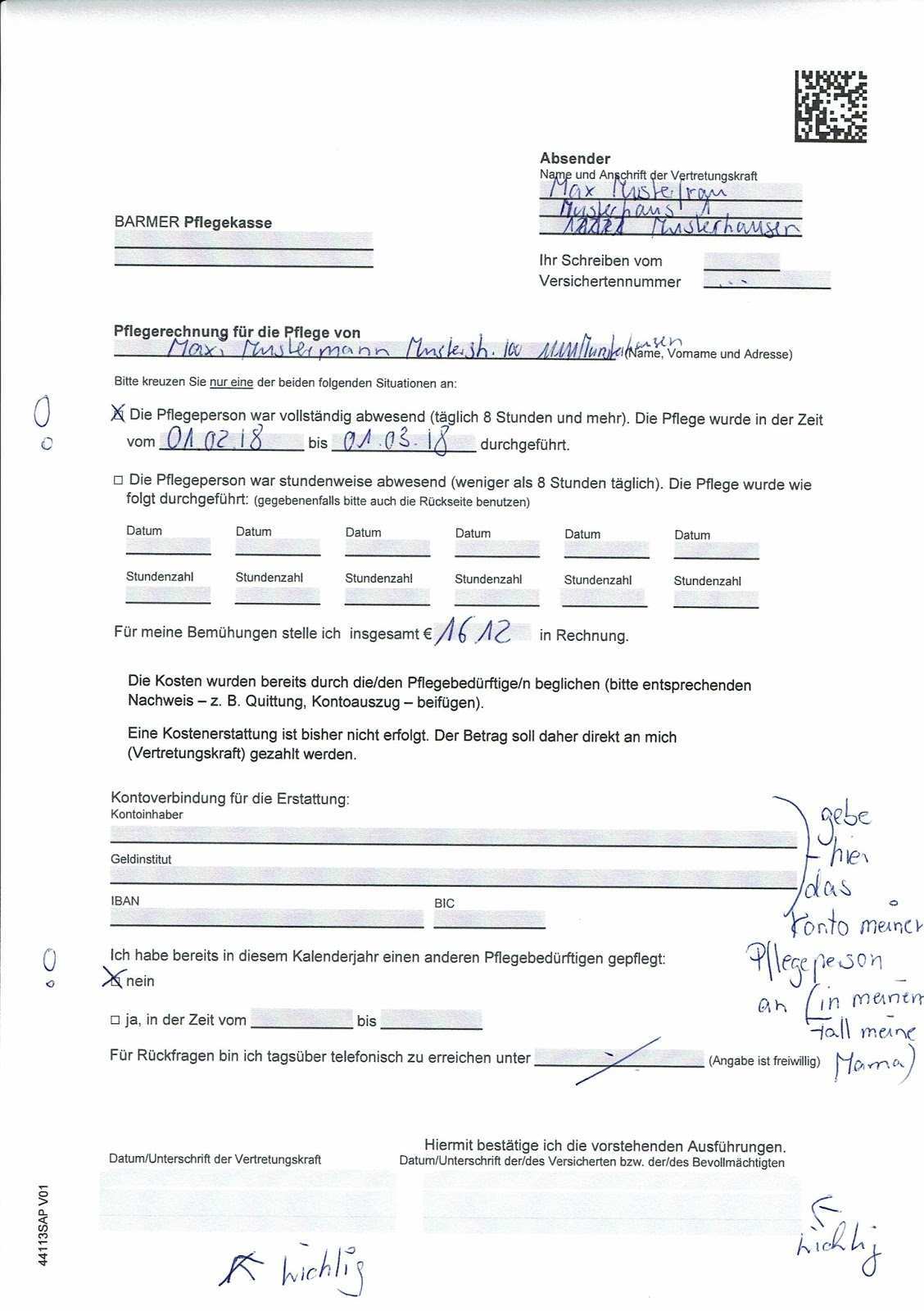 Muster quittung verhinderungspflege may 07 2016 get link. Name vorname anschrift wegen erholungsurlaub aus sonstigen gründen. Könnt ihr diese ausgaben nachweisen quittung zeiten erfasst etc dann könnt ihr sie noch 4 jahre nachträglich abrechnen. Wer mindestens pflegegrad 2 hat kann verhinderungspflege abrechnen.