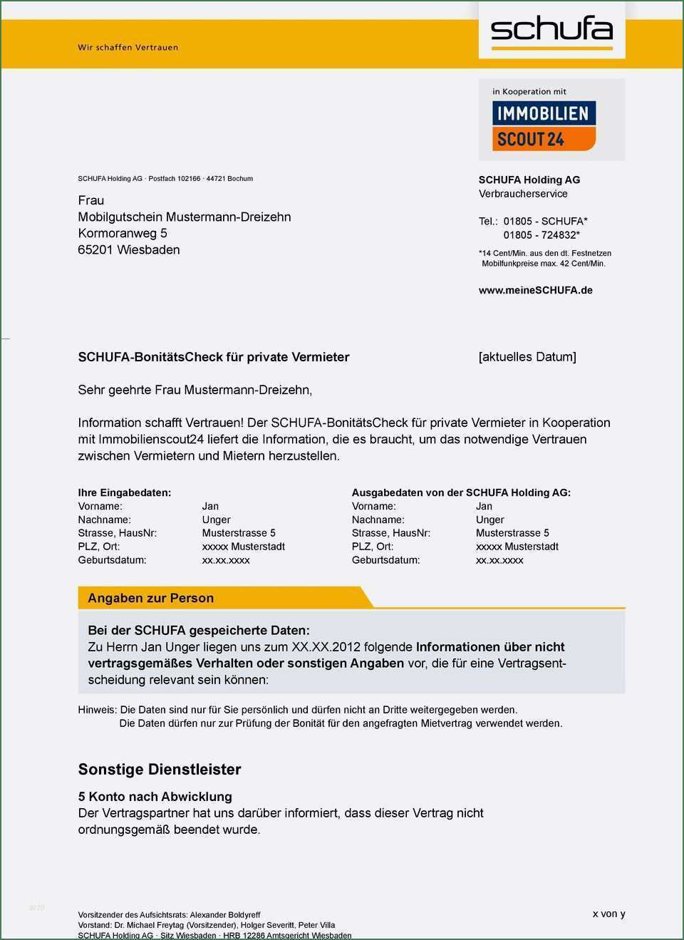 Muster schufa auskunft fuer vermieter. Dies ist vor allem in ballungszentren der fall wo es für jede frei werdende wohnung regelmäßig eine große zahl an bewerbern gibt. Für die vorlage bei möglichen vertragspartnern wie einem vermieter empfehlen wir die schufa bonitätsauskunft. Diese ist weit verbreitet und wird bei bewerbungen gerne gesehen. Welche schufa auskunft ist die richtige für ihren vermieter.