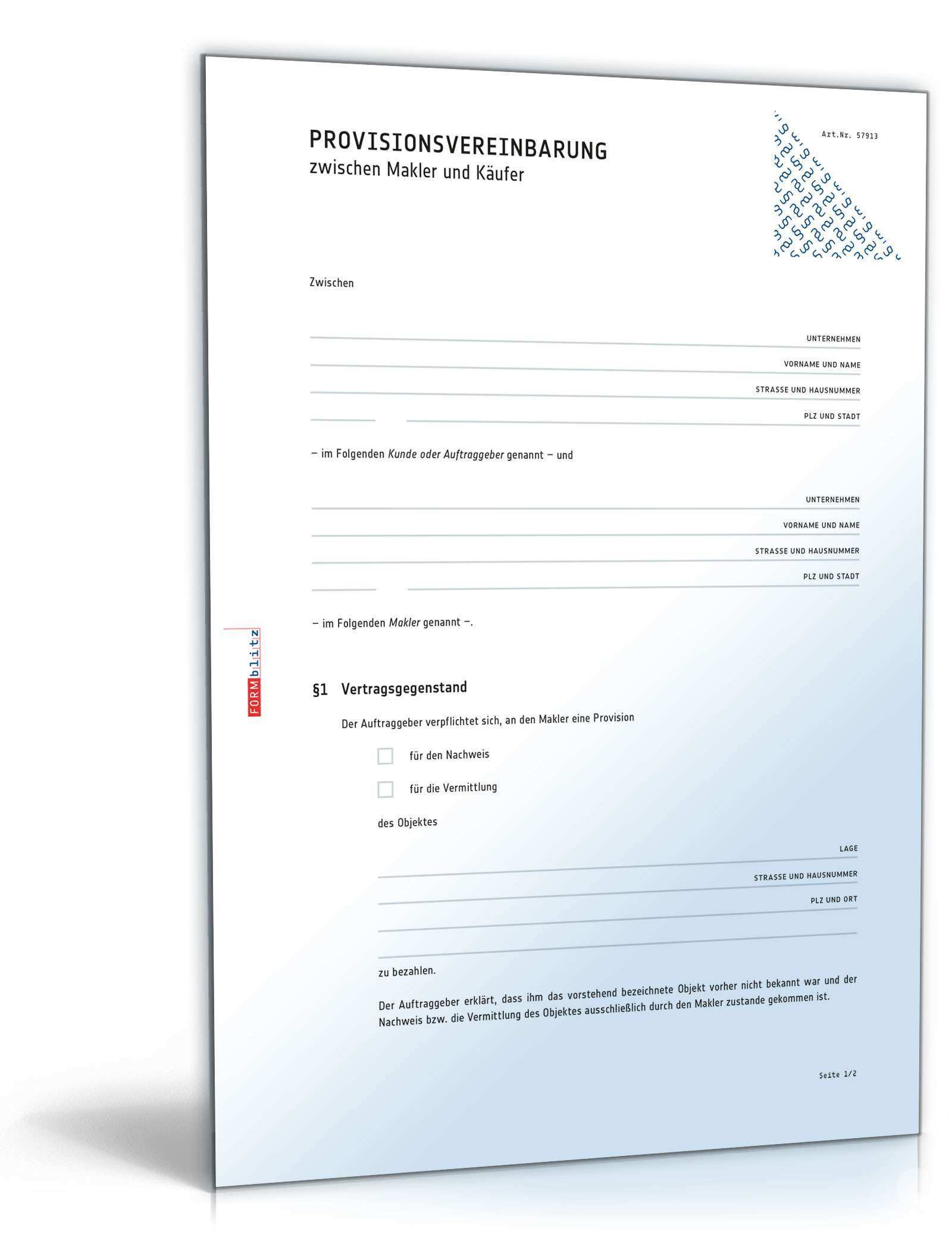 Solch eine nachweisbestätigung bezieht sich auf einen bereits abgeschlossenen maklervertrag. Sie können dafür das beigefügte muster widerrufsformular verwenden das jedoch nicht vorgeschrieben ist. 2 provision 2 1 kommt über eines der nachgewiesenen objekte ein notarieller kaufvertrag zustande hat der interessent eine provision in höhe von einschließlich der gesetzlichen mehr. Muster widerrufsformular wenn sie den vertrag widerrufen wollen dann füllen sie bitte dieses formular aus und senden sie es zurück an.