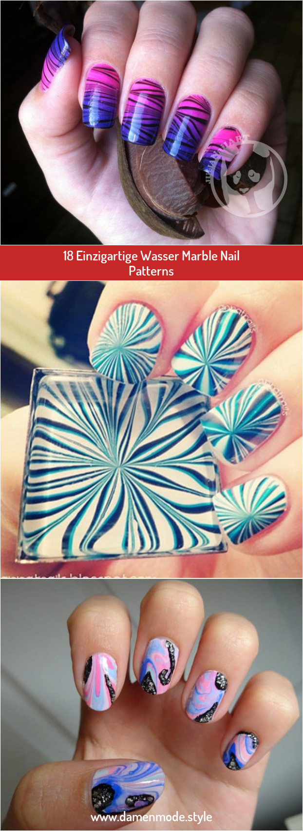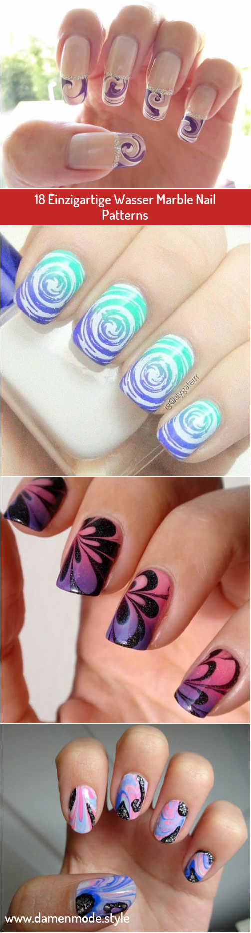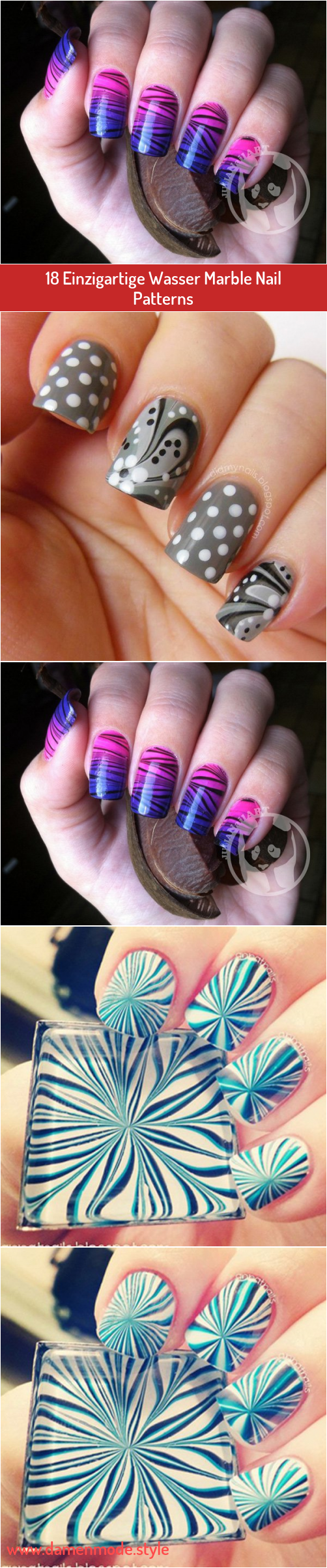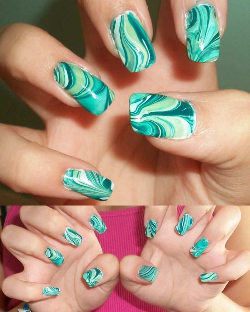 Nagellack muster mit wasser. Nageldesign mit wasser und nagellack der marmoreffekt als beliebter trend auch im grafik und interior design. Befüllen sie als erstes eine schale mit lauwarmem wasser ca. Tests mit nagellack und wasser. Das geeignete muster wird demnächst auf die fingernägel übertragen.