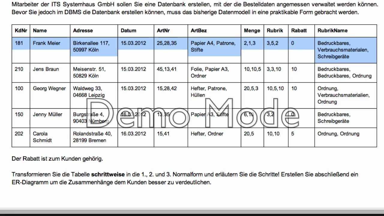 Nachdem wir das vorgehen zur normalisierung einer datenbank in drei videos bereits gezeigt haben haben wir nun hier eine übungsaufgabe mit der ihr die norm. Normalisierung lösung 2nf probleme die sich daraus ergeben. Anschließend werden tabellen aufgeteilt zum beispiel eine tabelle. Normalisierung einer datenbank am konkreten beispiel anwendungsentwickler podcast 144.