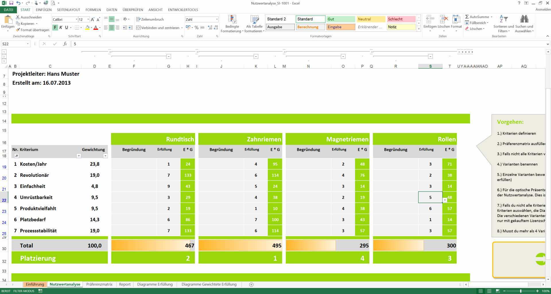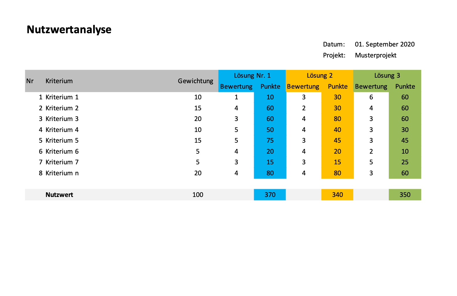 Nutzwertanalyse Excel Vorlage Kostenlos