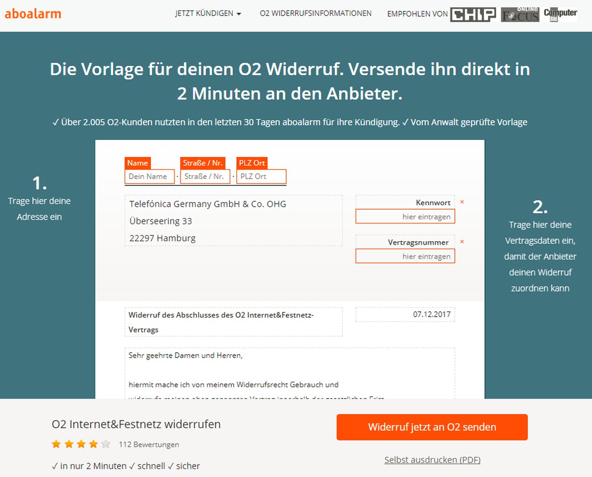 O2 Widerruf Vorlage
