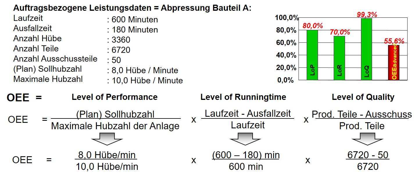 Oee berechnung beispiel. Oee 79 x 92 x 98 71. Allgemein gilt ein oee wert kleiner 65 prozent als alarmierend. Wenn sie diesen artikel durchgearbeitet haben haben sie ein umfassendes verständnis der oee kalkulation. Geben sie die entsprechenden werte in die tabelle ein und die oee kennzahlen werden ihnen automatisch berechnet und in der balkengrafik dargestellt.