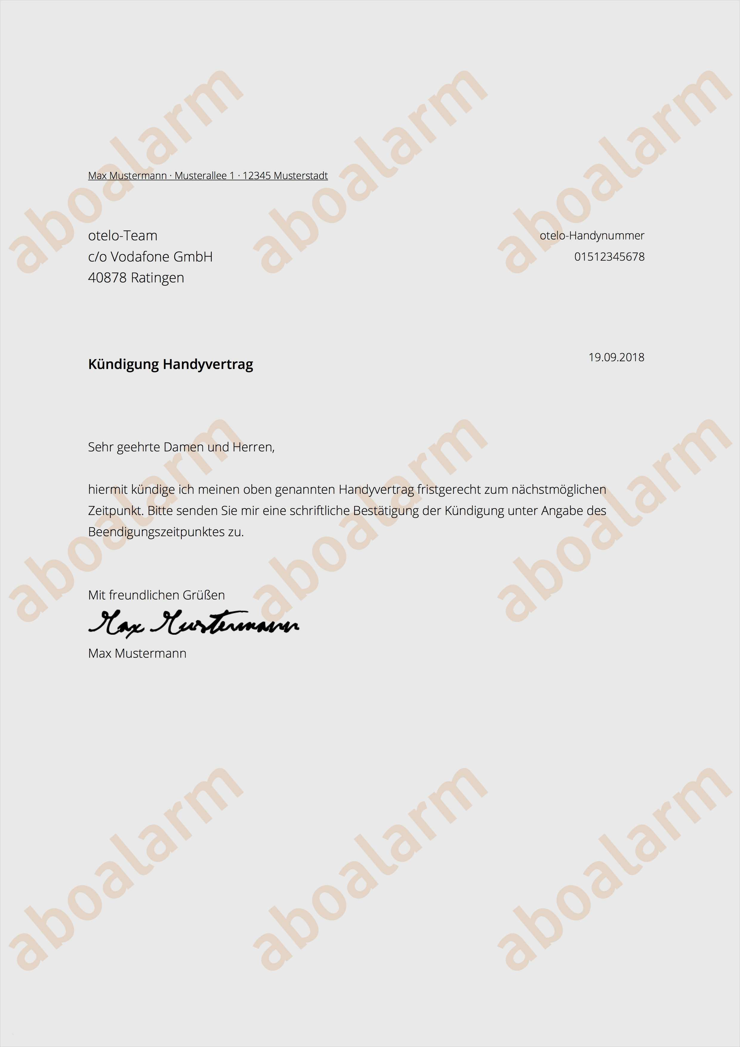 Schnell und einfach in nur wenigen minuten erledigt. Muster vorlage zur kündigung deines otelo vertrags. Falls sie der auffassung sind dass die kündigung auf unrechtmäßigen entlassungsgründen beruht sieht sich als serviceschreiben oder die beendigung des arbeitsverhältnisses eine der ersten maßnahmen. Die kündigungsfrist beträgt drei monate zum ende der laufzeit.