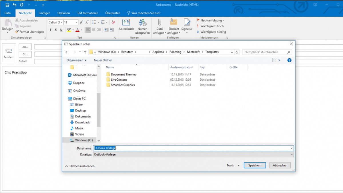 Outlook 2007 verwendet den ordnernamen templates statt vorlagen. Geben sie im feld dateiname einen namen für die vorlage ein und klicken sie dann auf speichern. Klicken sie dann in der menüleiste auf datei speichern unter. Klicke im menü datei und wähle neu.