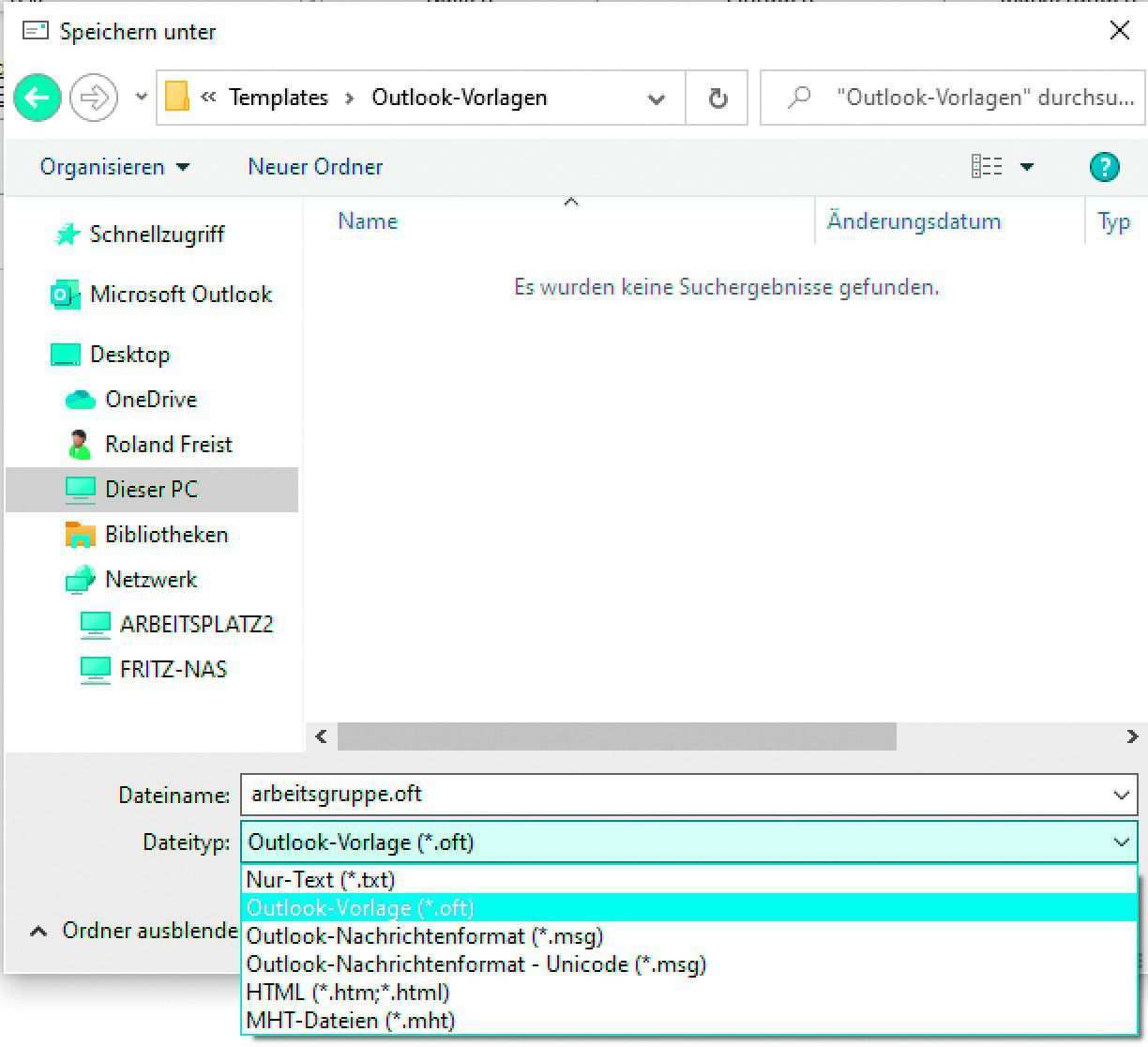 Vorlagen speichert outlook in dateien mit der erweiterung oft. Gegebenenfalls ändern sie noch den namensvorschlag des dateinamens ab und klicken auf speichern. Vergeben sie einen dateinamen. Der dateityp outlook vorlage ist nur dann verfügbar wenn word nicht als e mail editor eingestellt ist.