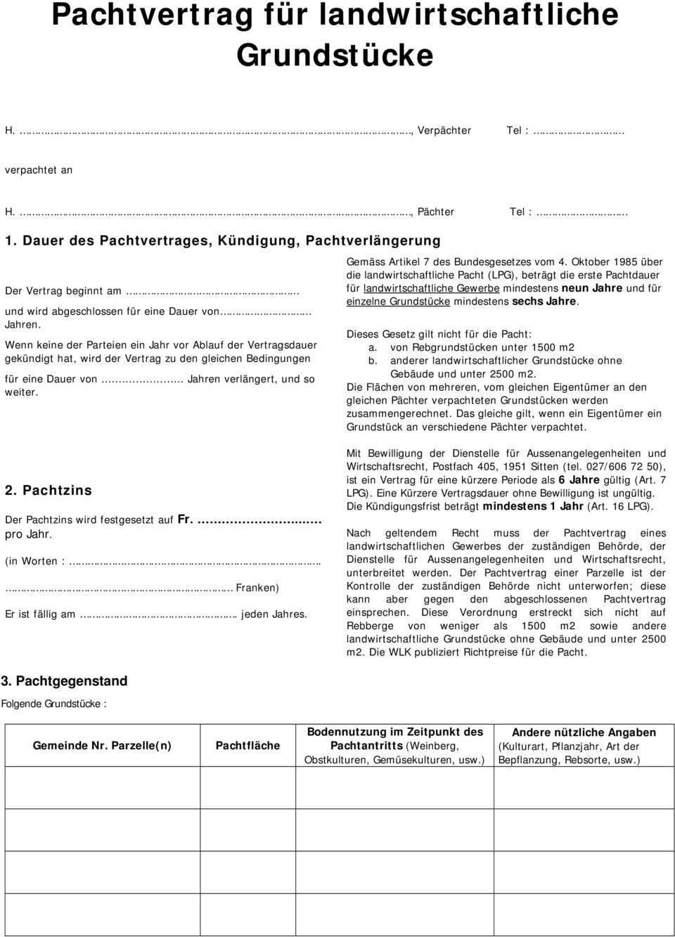 Pachtvertrag restaurantpacht pdf 39 kb schrebergartenpacht. Der pachtvertrag kann unter einhaltung einer frist von 12 monaten auf ende september gekündigt werden frühestens jedoch per datum. Zum beispiel obst gemüse usw. E der verpächter reicht eine kopie dieses vertrags bei der zuständigen landwirtschafts behörde ein.