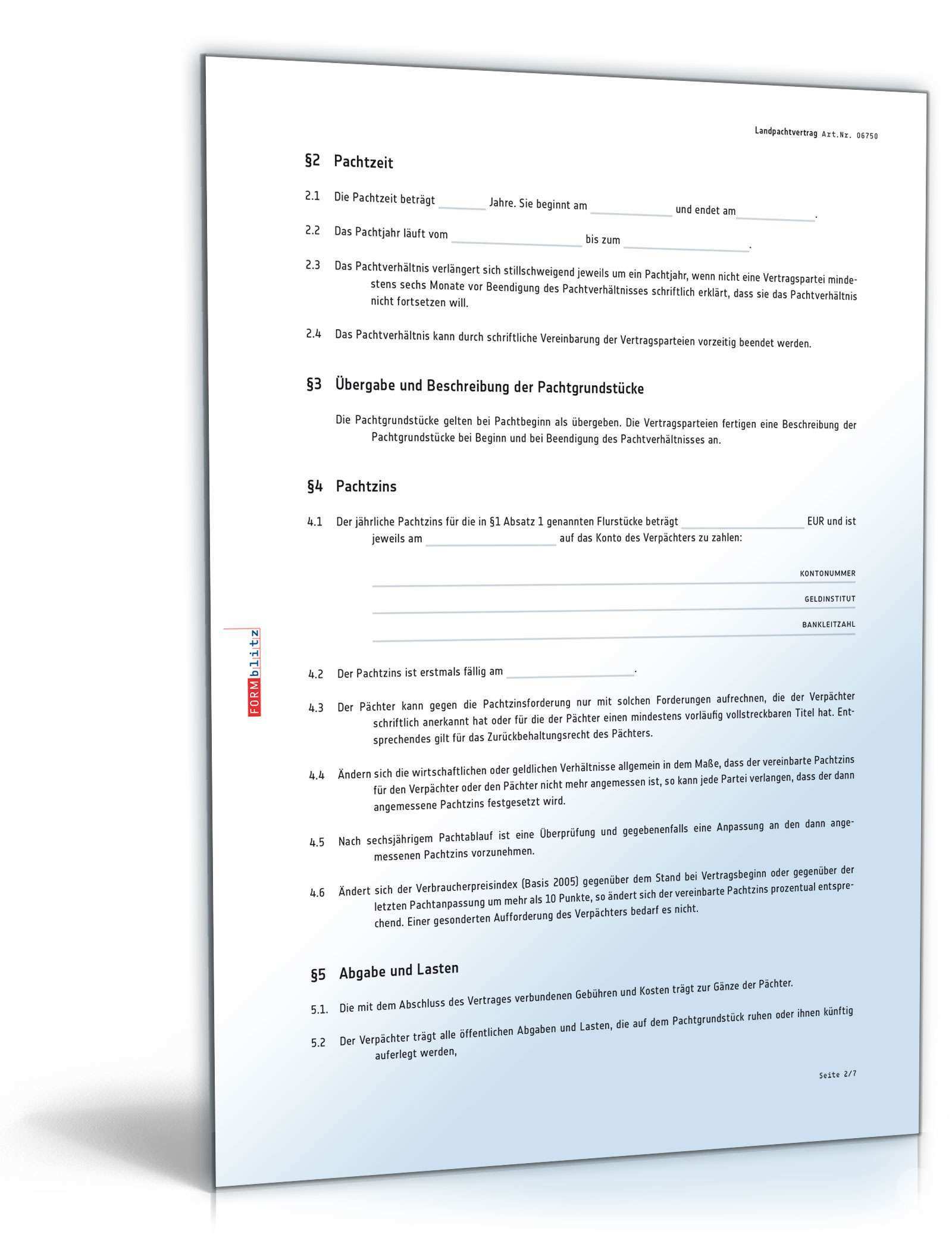 Pachtvertrag Landwirtschaft Muster Kostenlos