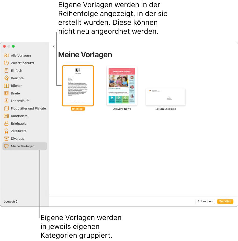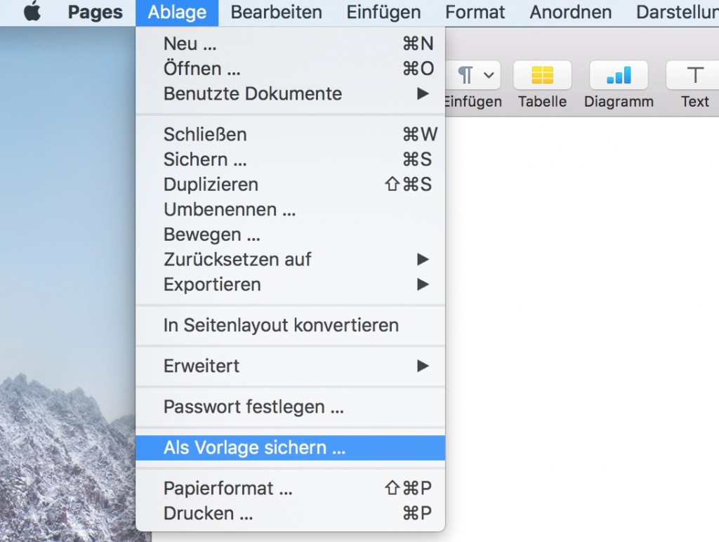 Wenn du ein dokument erstellt hast das du als grundlage für weitere dokumente verwenden möchtest kannst du es als vorlage sichern. Alternativ kannst du im menü pages oben auf dem bildschirm ablage neu auswählen. Scrolle in der vorlagenauswahl bis du eine vorlage für den gewünschten dokument oder brieftyp gefunden hast. Auch bei pages können sie eine vorlage erstellen.