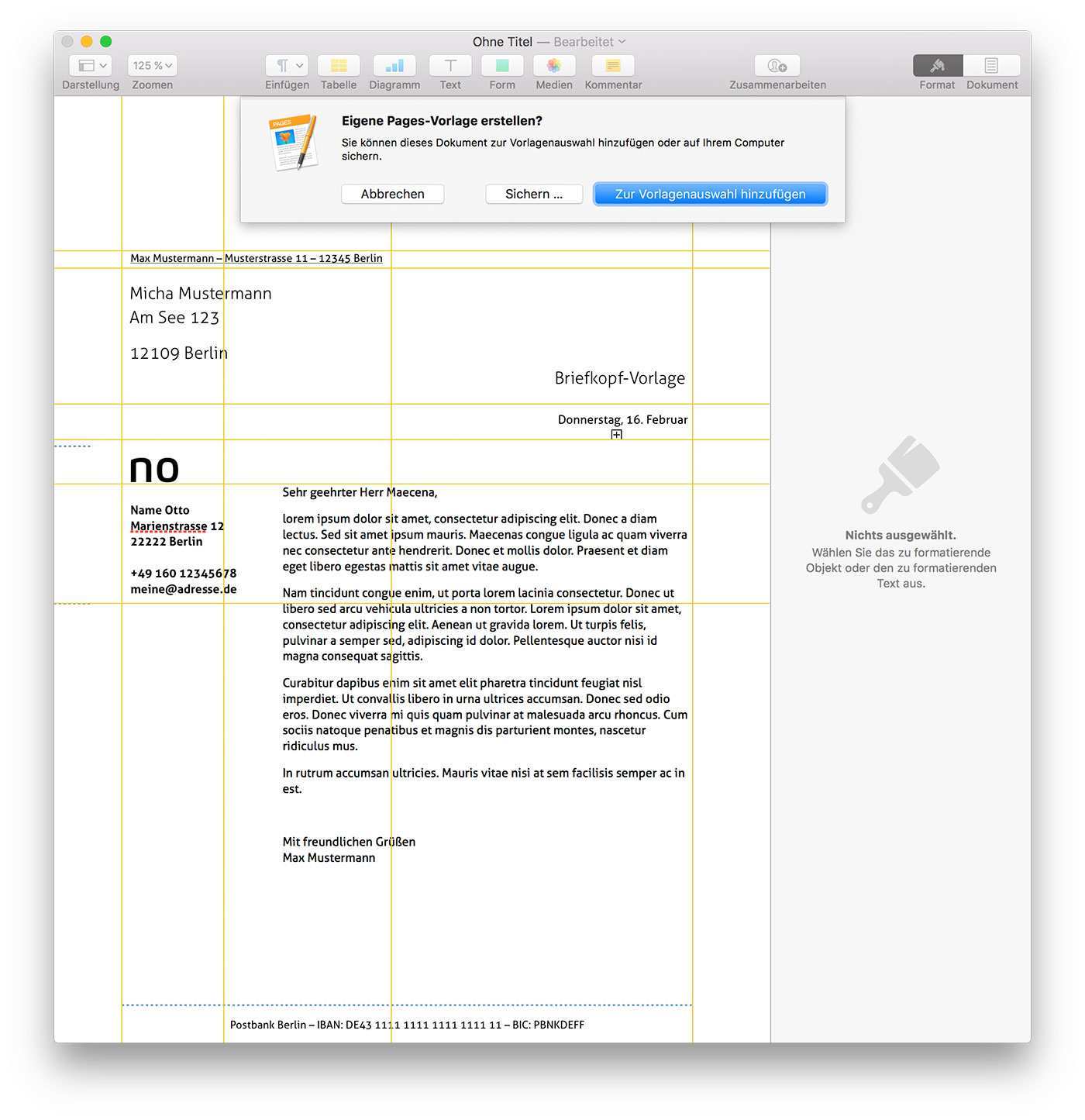 Pages vorlage erstellen. Erstellen eigener vorlagen in pages auf dem mac. Man muss aber genau wissen wo die vielen optionen versteckt sind um damit zum beispiel briefköpfe rechnungsformulare oder wasserzeichen erstellen zu können. First page number 401 last page. öffne pages und klicke im dialogfenster auf die taste neues dokument.