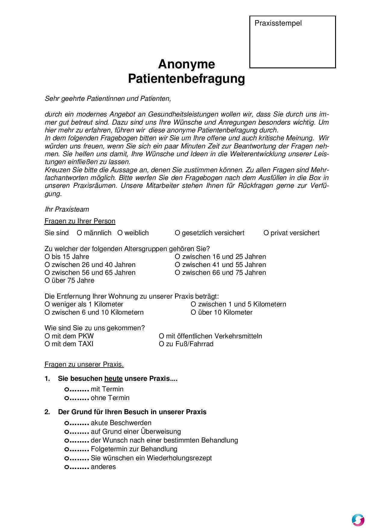 Diese werden aber nicht zu prosa ermuntert. Bitte verwenden sie einen kugelschreiber oder nicht zu starken filzstift. Die entwicklungen zur patientenbefragung stehen unter der prämisse die perspektive der patientinnen und patienten von beginn an einzubinden. Umso wichtiger ist uns neben dem behandlungserfolg dass unsere patienten sich bei uns gut versorgt fühlen.