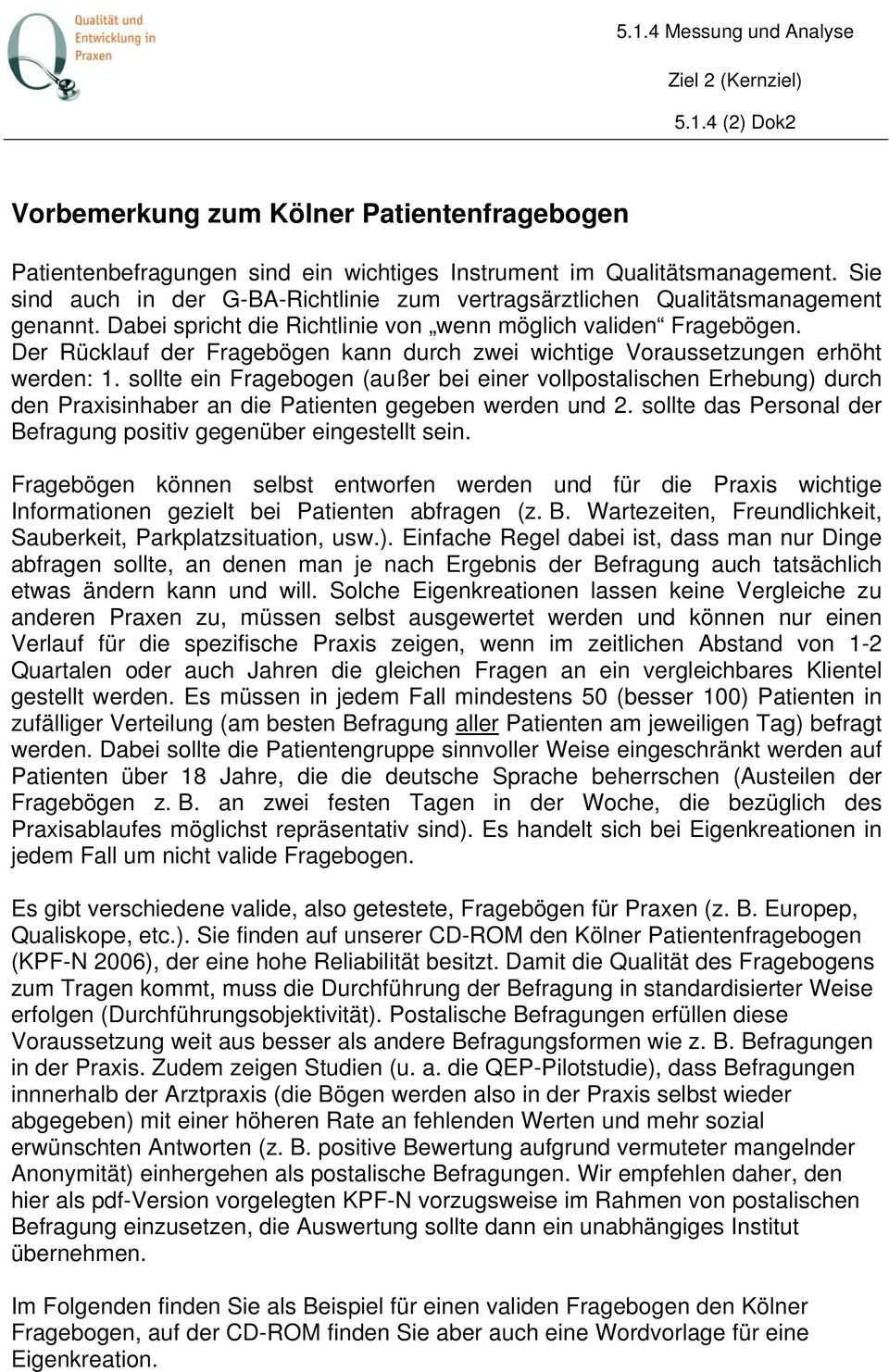 Eine einfache und kostengünstige methode ist die patientenbefragung.