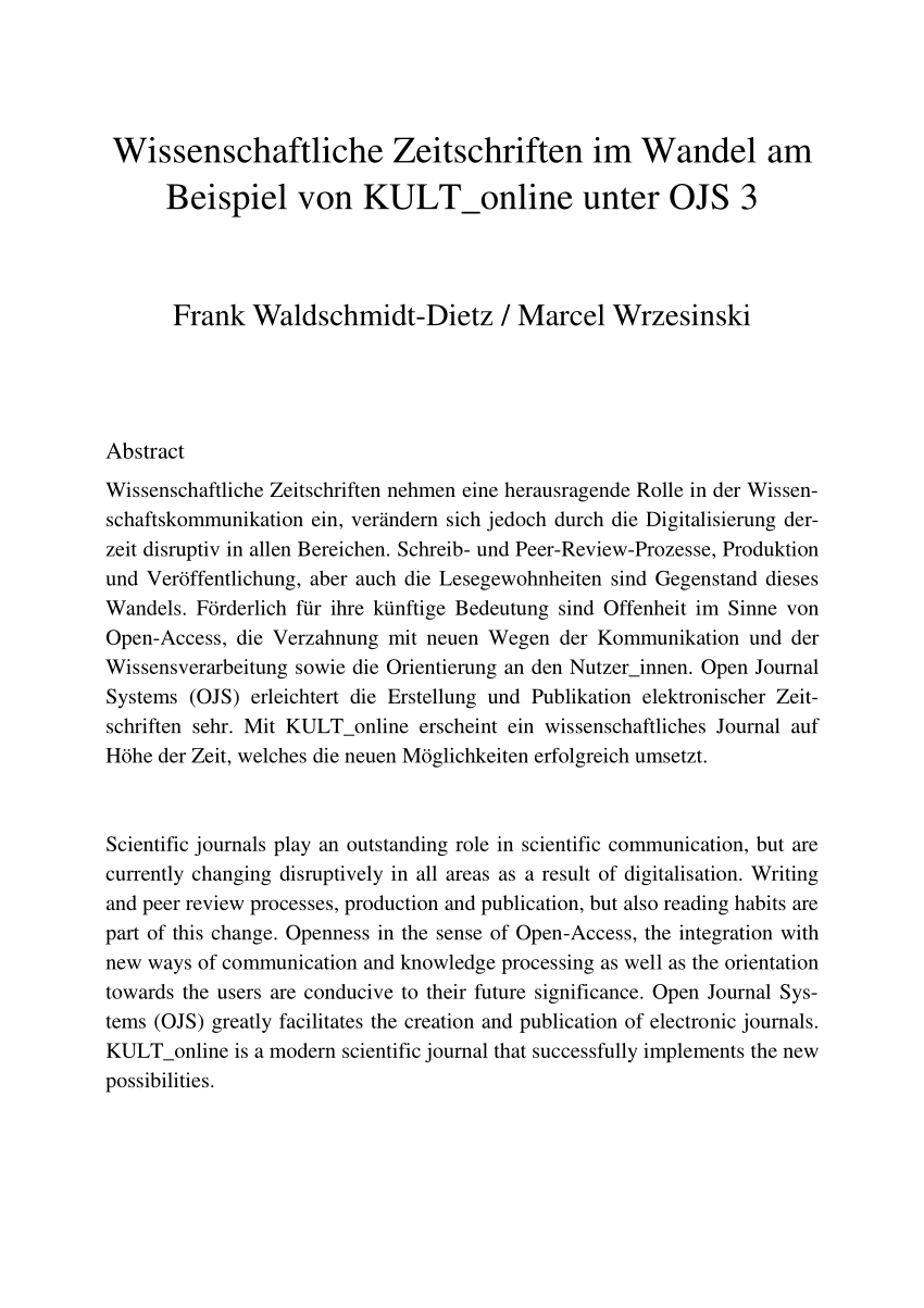 There are a few typos missing words and wrong verb tenses. Peer review is intended to improve the quality of manuscripts that are deemed suitable for publication. Ist das der fall wird es zur begutachtung freigegeben. This process is extremely rigorous.