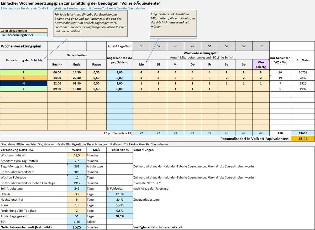 Personalbedarf berechnen beispiel. Personalbedarf in unserem beispiel waren dies 46 09 stellen aufgeteilt werden soll. Die dateien sind so aufgebaut dass sie je nach bedarf. Mit diesen einfachen arbeitshilfen kann zum beispiel unaufwändig der besetzungs und personalbedarf ermittelt und die sollbesetzung in dienstplänen überprüft werden. Zunächst müssen der künftige brutto personalbedarf und der künftige personalbestand ermittelt werden um anschließend den netto personalbedarf berechnen zu können.