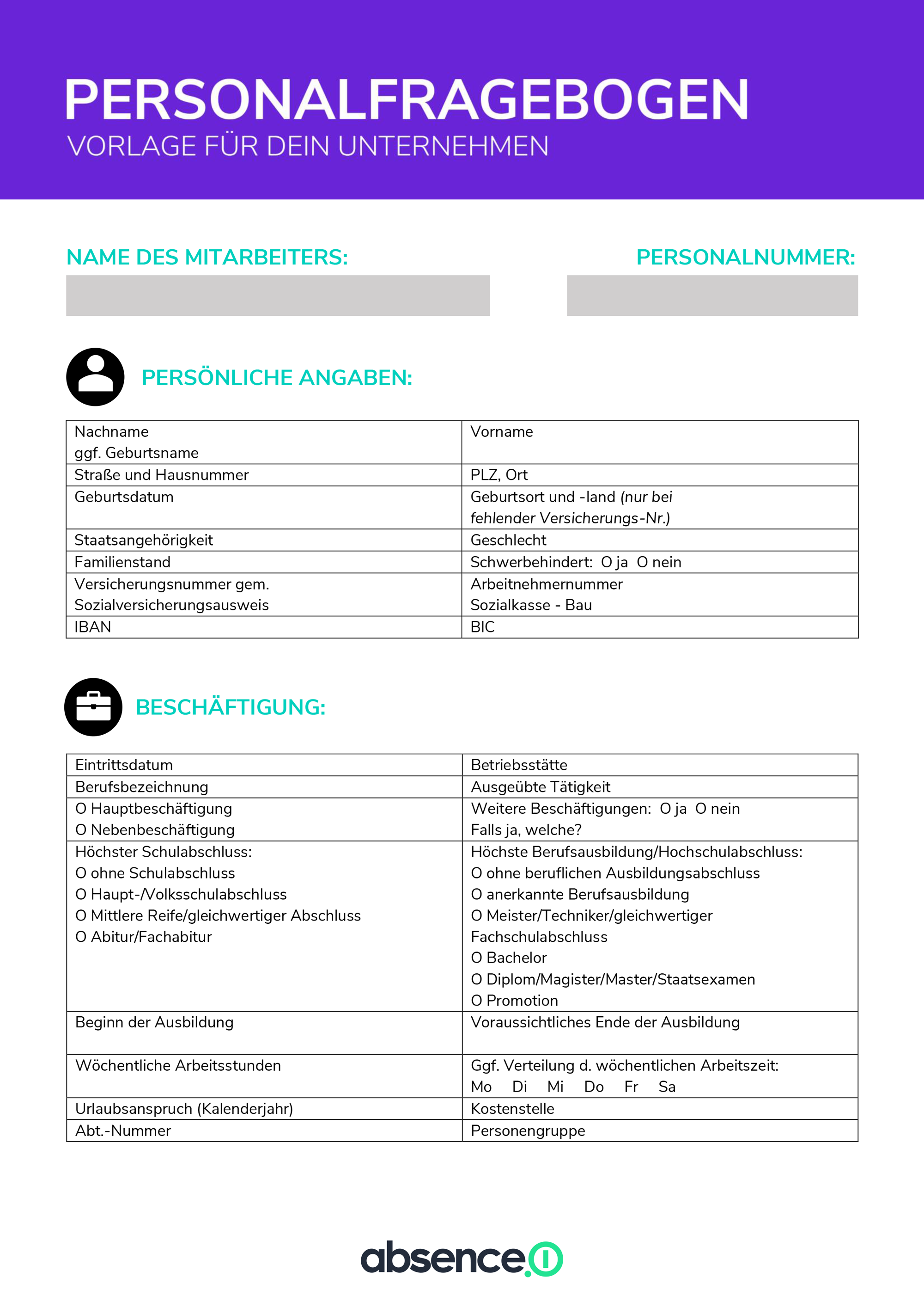 Muster vorlage personalfragebogen hier kostenlos herunterladen. Wir weisen ausdrücklich darauf hin dass die daten keine handlungsanleitung darstellen sondern als erstinformation. Www convictorius de jede vorlage kann bequem konfiguriert werden mit der absicht in bestimmten situationen nützlich zu das. Personalfragebogen grau hinterlegte felder sind vom arbeitgeber auszufüllen firma.