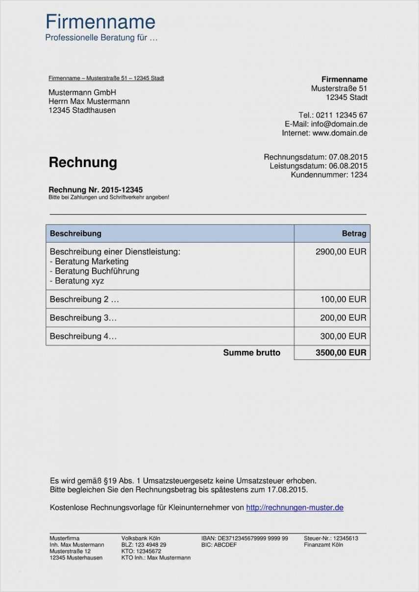 Name und anschrift des leistenden unternehmens stehen in der kopfzeile der rechnung. Eine muster rechnung finden sie außerdem hier zum pdf download. Beachten sie die pflichtangaben für ihre rechnung ist es gar nicht so schwierig ihre eigene rechnungsvorlage zu erstellen. Bei unserer word datei handelt es sich um ein ansichtsexemplar.