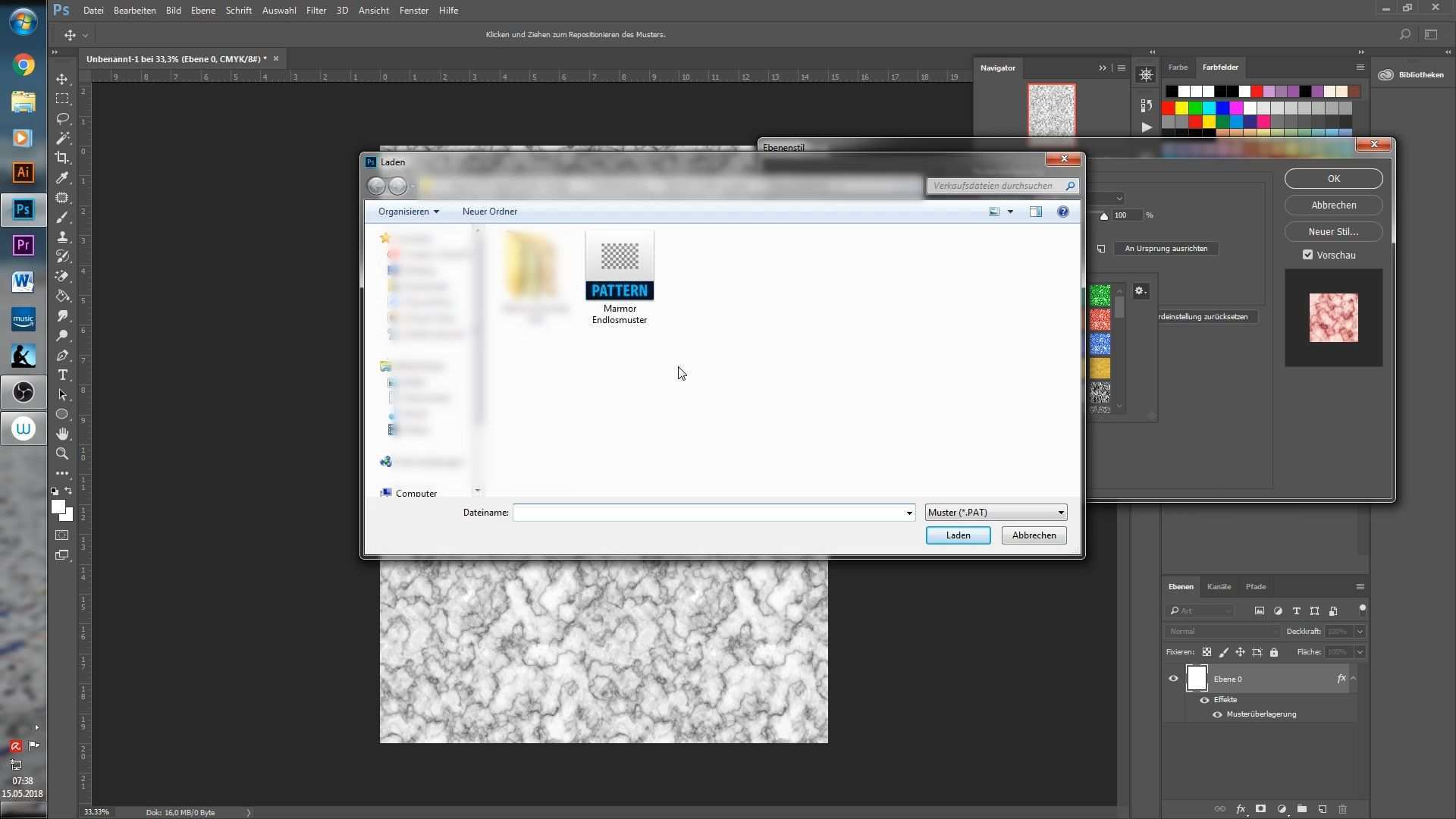Photoshop muster einfuegen. Photoshop erstellt automatisch eine füllebene über der pixelebene. In photoshop elements stehen mehrere muster zur auswahl. Dieses video ist für anfänger gedacht. Wenn sie einem bild ein muster aus einem anderen bild zuweisen konvertiert photoshop den farbmodus.