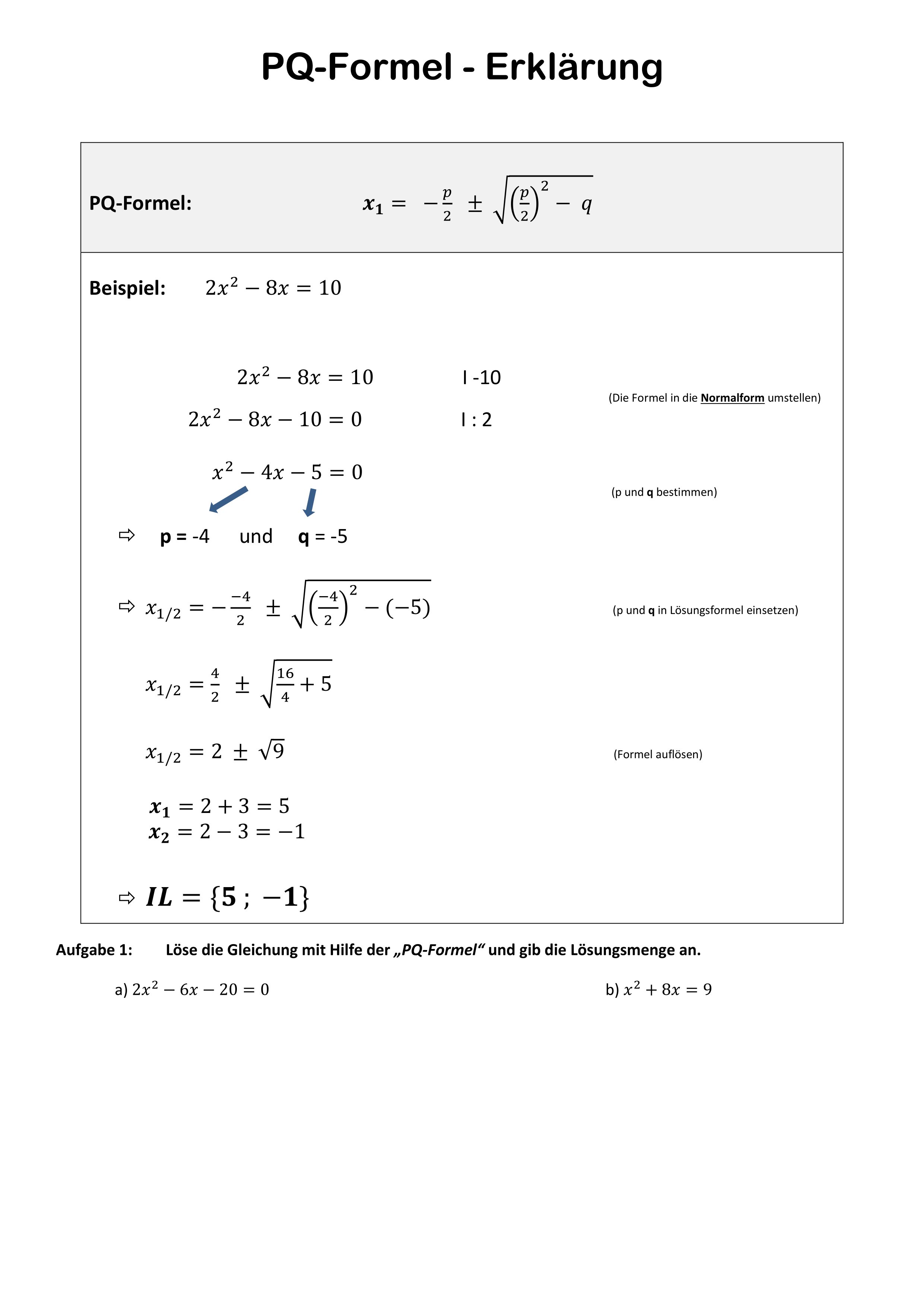 Jetzt hast du mehrere möglichkeiten. Pq formel für quadratische gleichungen die pq formel wird zum lösen quadratischer gleichungen eingesetzt. Zum besseren verständnis sehen wir uns nun beispiele zur pq formel an. Im gegensatz zu den gleichungen die wir bisher kennen gelernt hatten beispiel.
