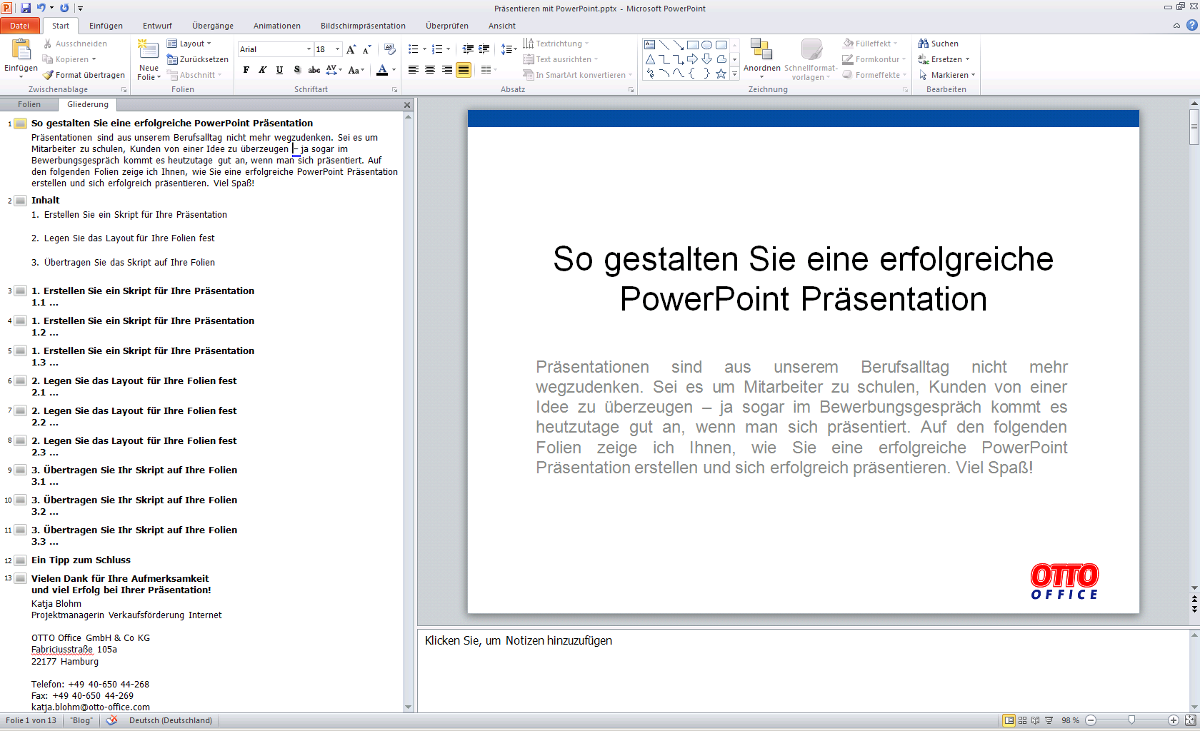 Praesentation Unternehmen Beispiel
