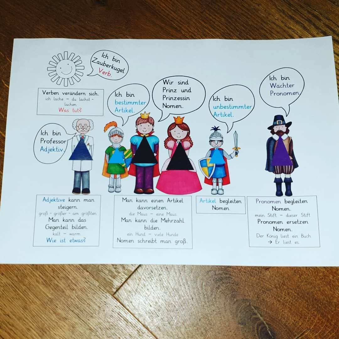 Nomen prinz und prinzessin verben sonne zauberkugel oder fee adjektive professor unbestimmter und bestimmter artikel knappen pronomen ritter oder wächter nomentürme menschen tiere pflanzen dinge gefühle gedanken jeweils mit und ohne symbolen nach.